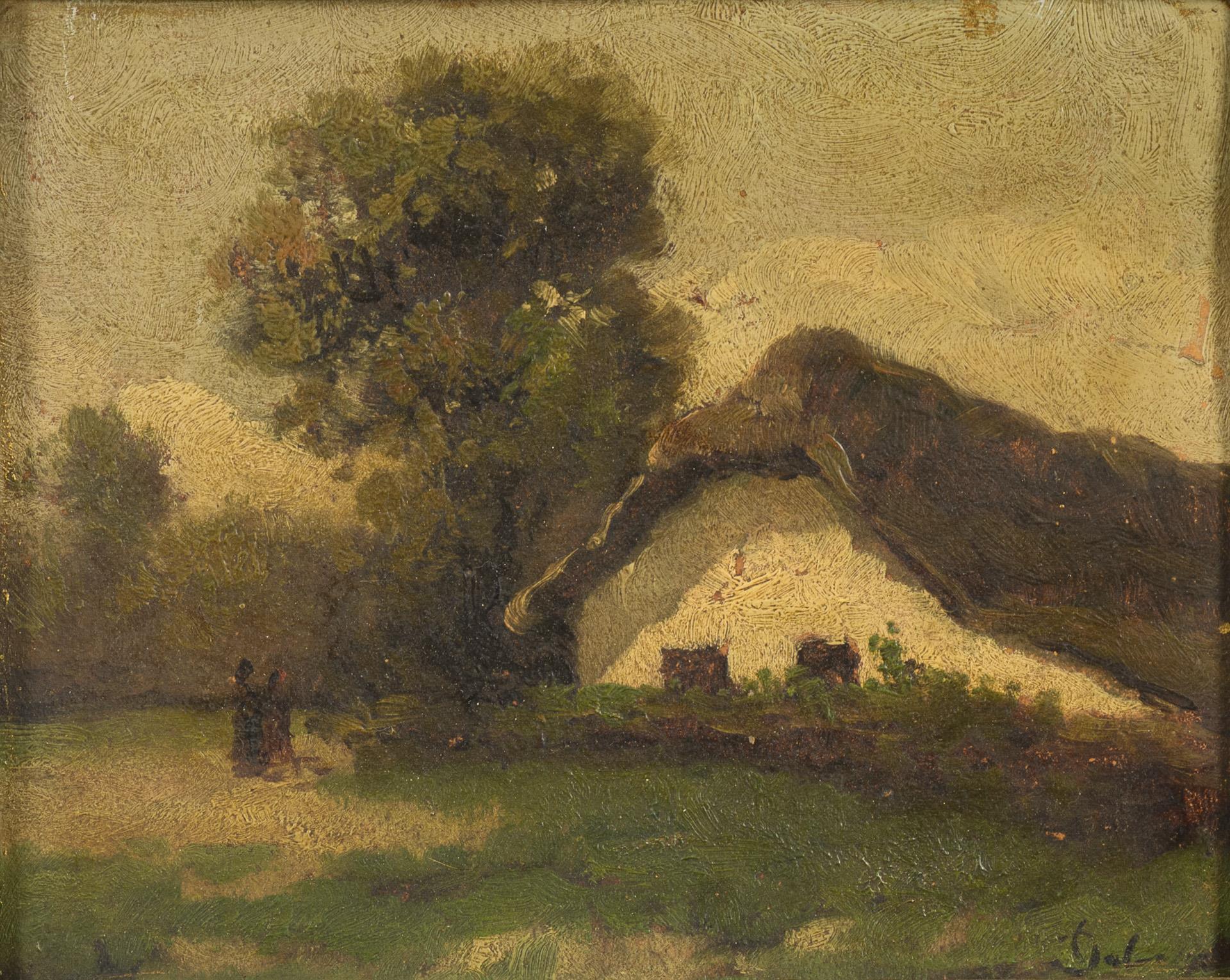 Distinctly signed: Landscape with thatched house