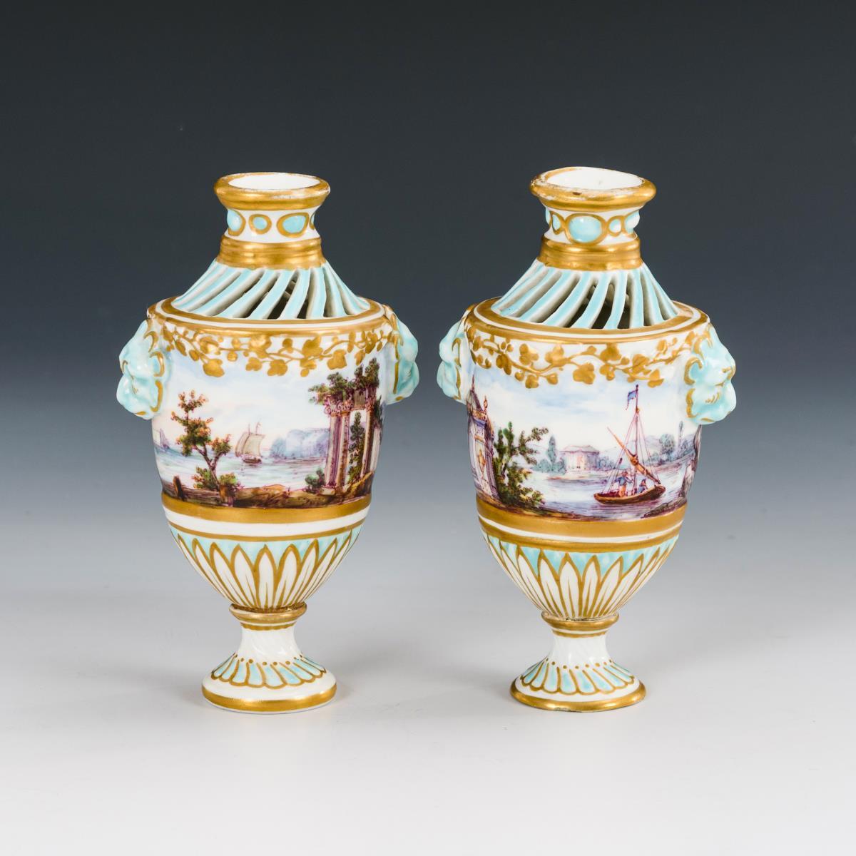 2 kleine Potpourrivasen mit Küstenlandschaften.