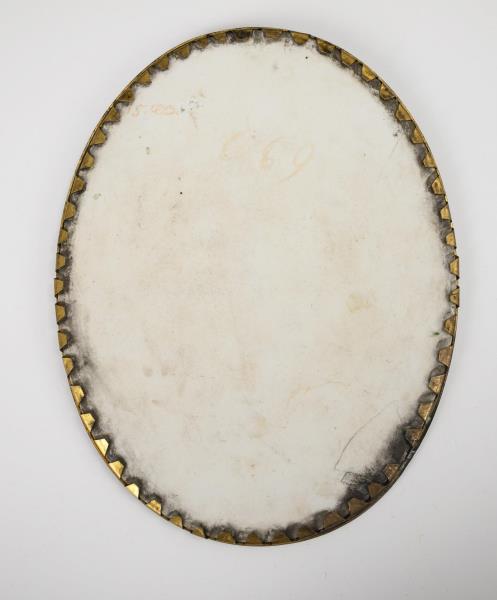 Oval plate with the depiction of St. Agnes with long hair and cloth, after a painting by the Spanish painter Jusepe de Ribera (1591-1652). Scratch marks, large, glued chip to the reverse (not visible from the front).