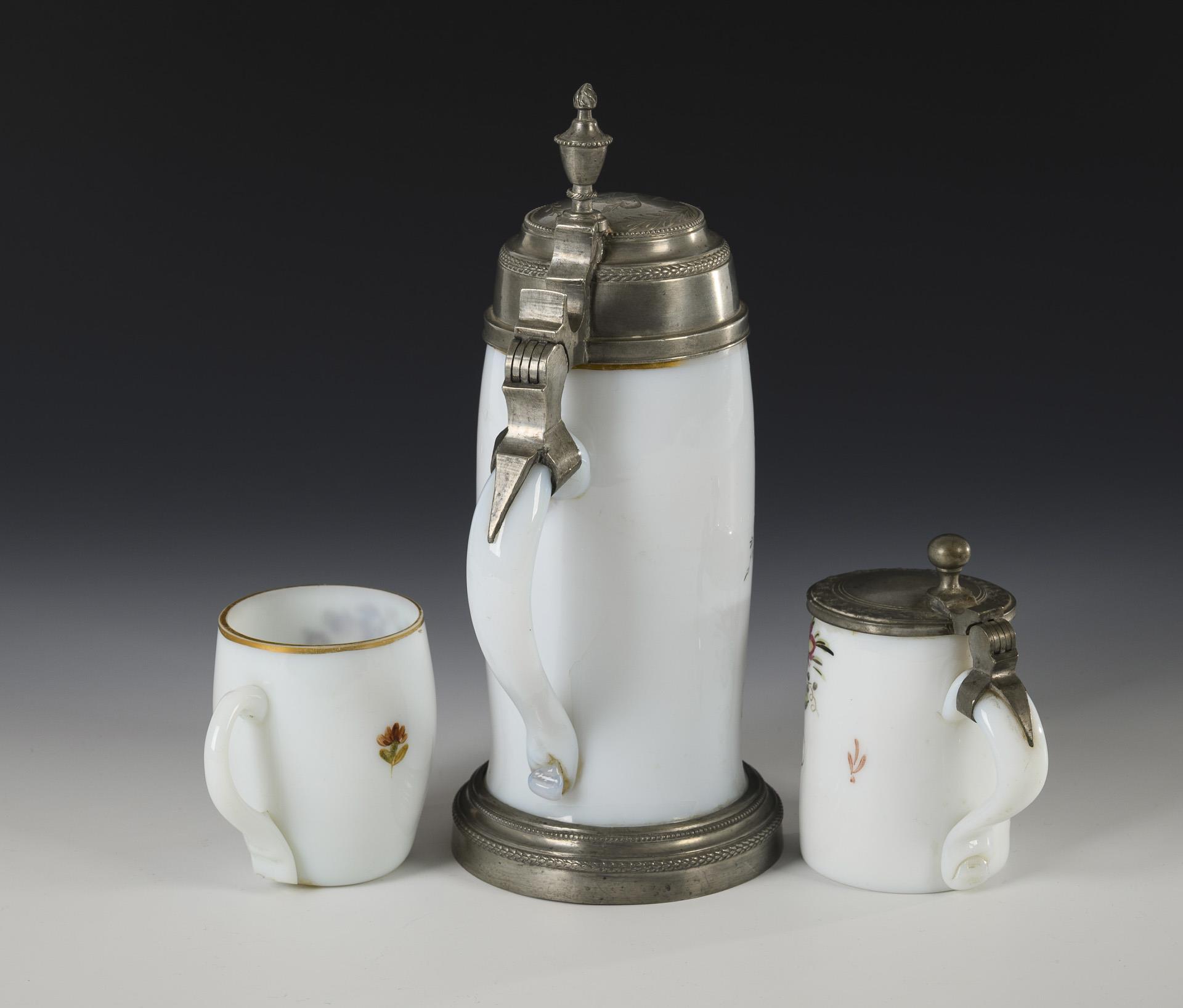 2 milk glass beer mugs and 1 mug.