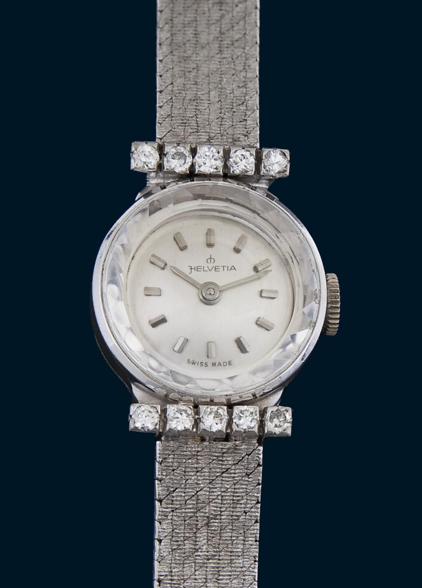 Gold wristwatch with diamonds. Helvetia, Switzerland.