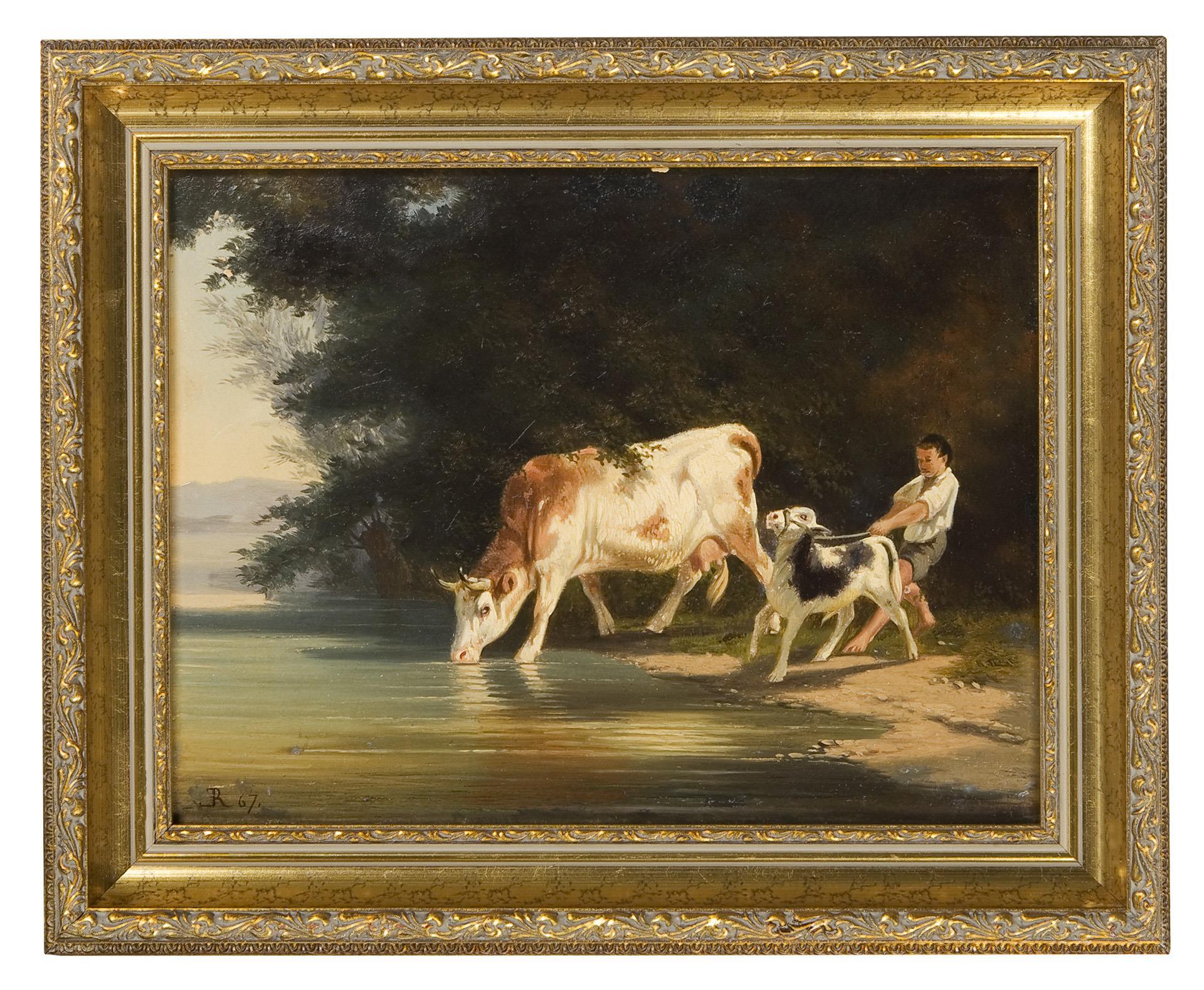 Richard, landscape and animal painter, studied in Karlsruhe, Munich and Brussels. 1846 Baden court painter, 1859 gallery inspector, 1893 director of the Grand Ducal Art Gallery * Partner auction Bergmann.