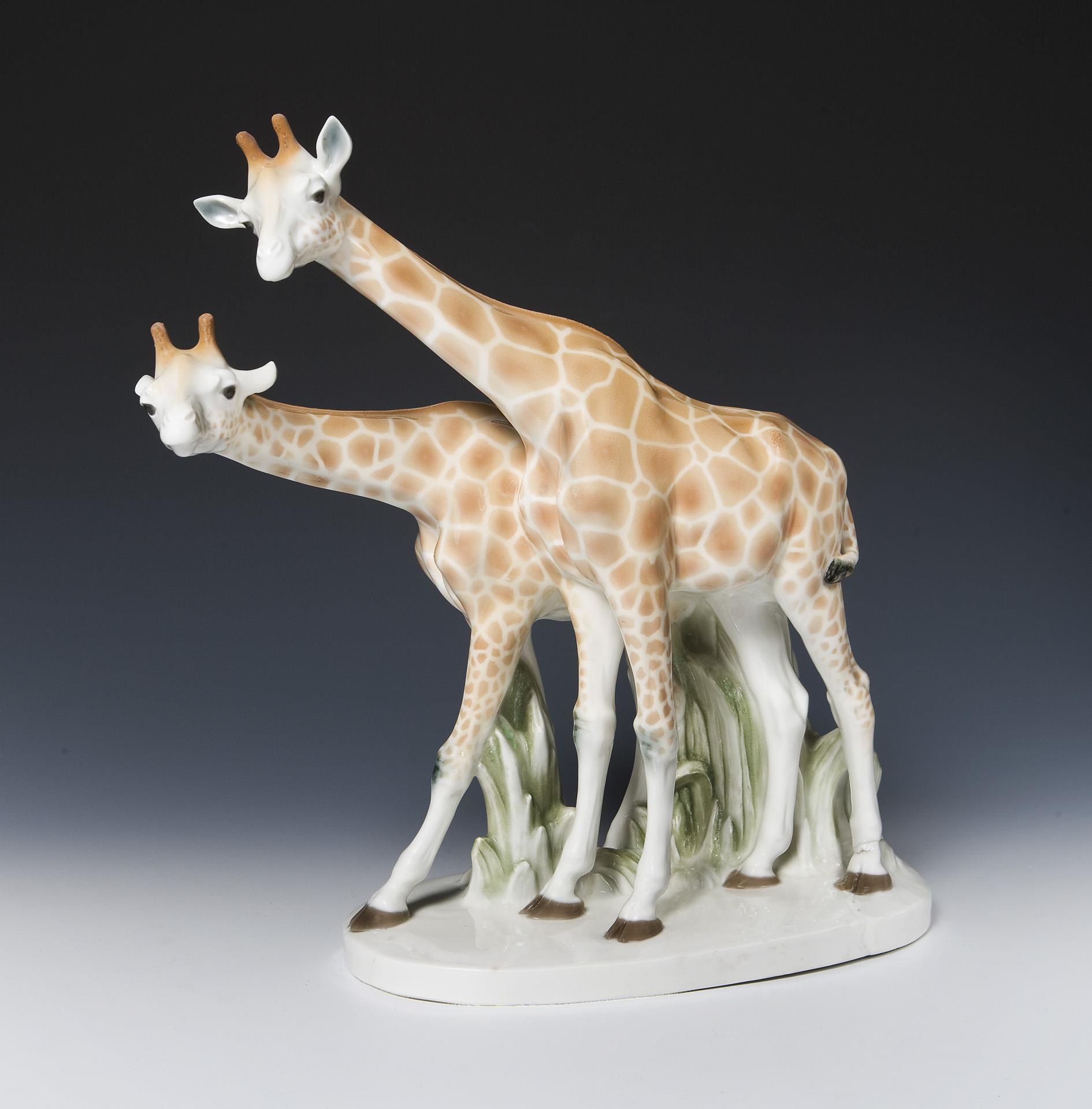 Animal figurine group: giraffes. Meissen.