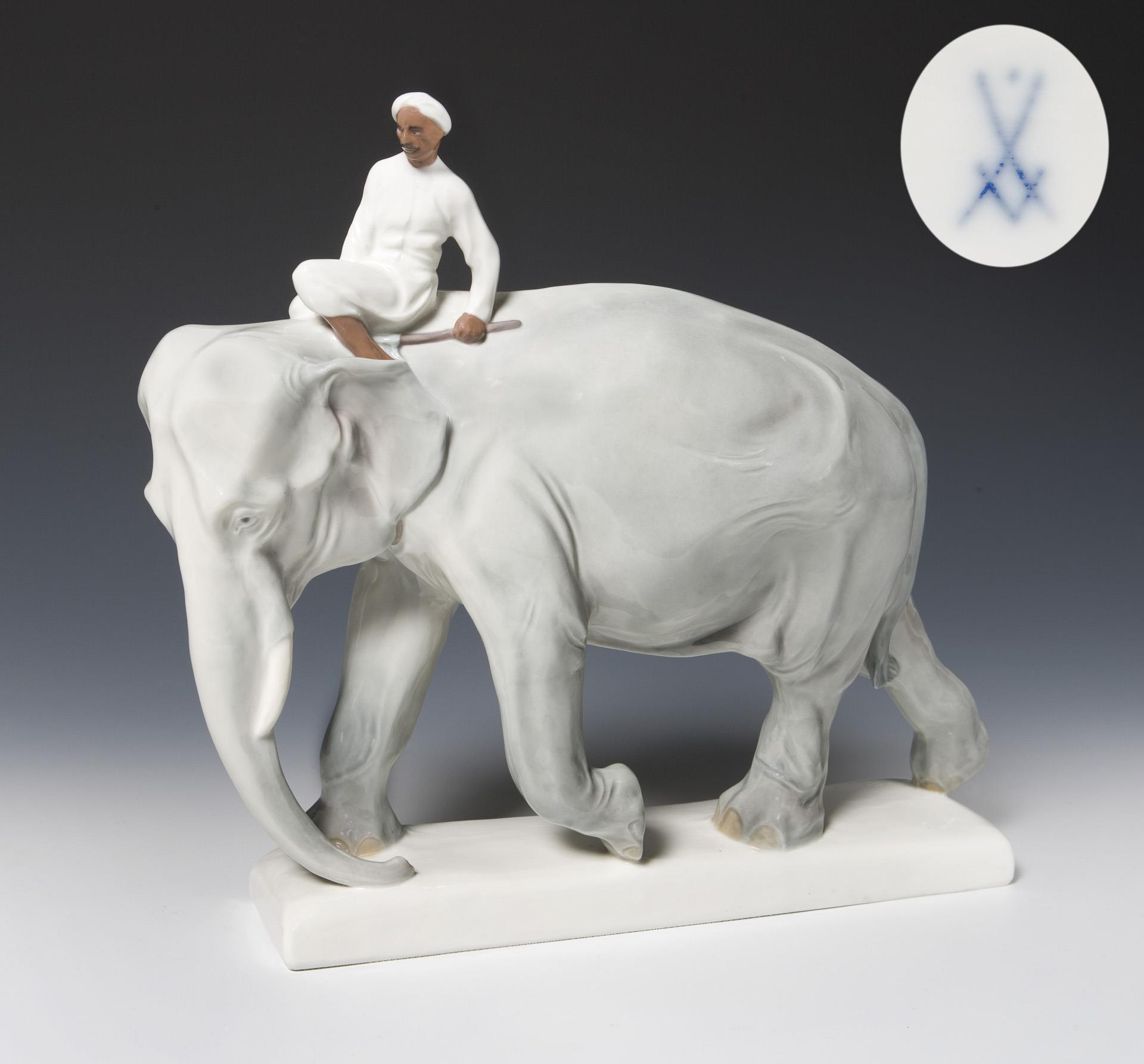 Animal figure: Elephant with Indian. Meissen.