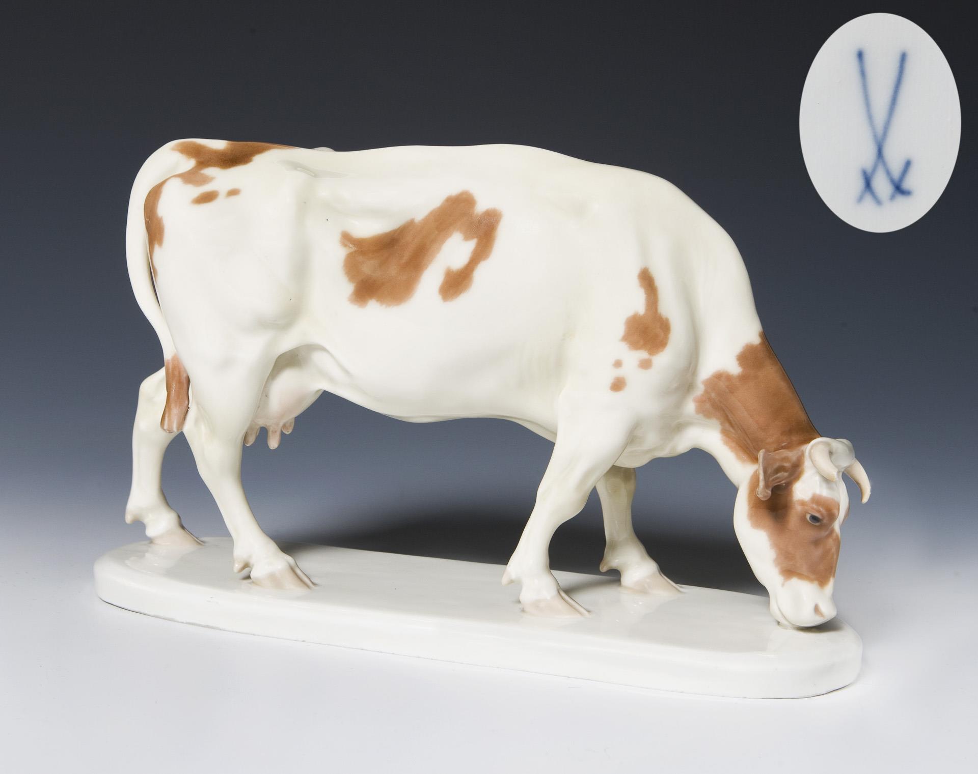 Animal figure: cow, grazing. Meissen.