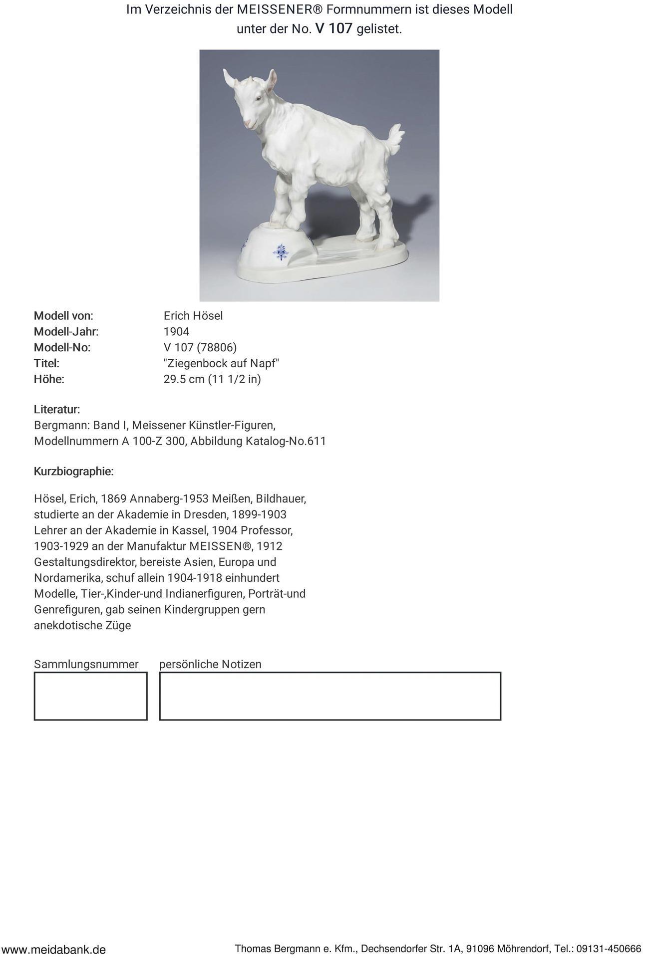 Hösel, sculptor, modeller, studied at the academy in Dresden. 1899-1903 teacher at the academy in Kassel, 1904 professor. 1903-1929 head of the design department at the Meissen manufactory, 1930-1950 freelance. Meissen manufactory price: 4490,- Euro * Partner auction Bergmann.