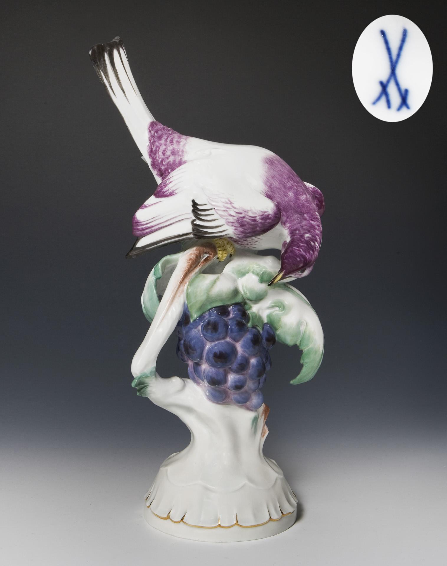 Art deco animal figurine: Blackbird on a bunch of grapes. Meissen.