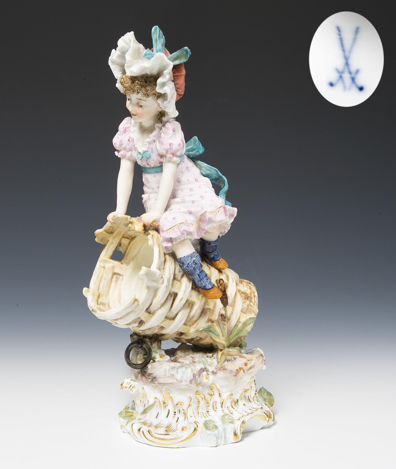 Girl on wicker basket. Meissen.
