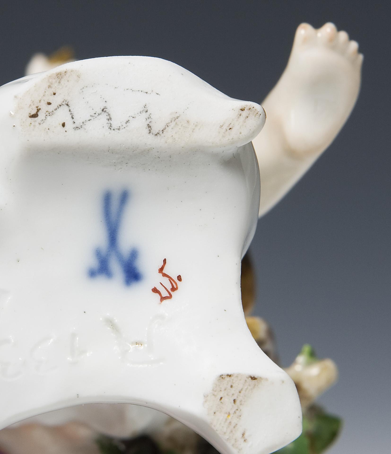 Model year: 1898, painted in color, painted gold. Incised mark, press mark, painter's mark, sword mark. East tip, some leaves bumped.