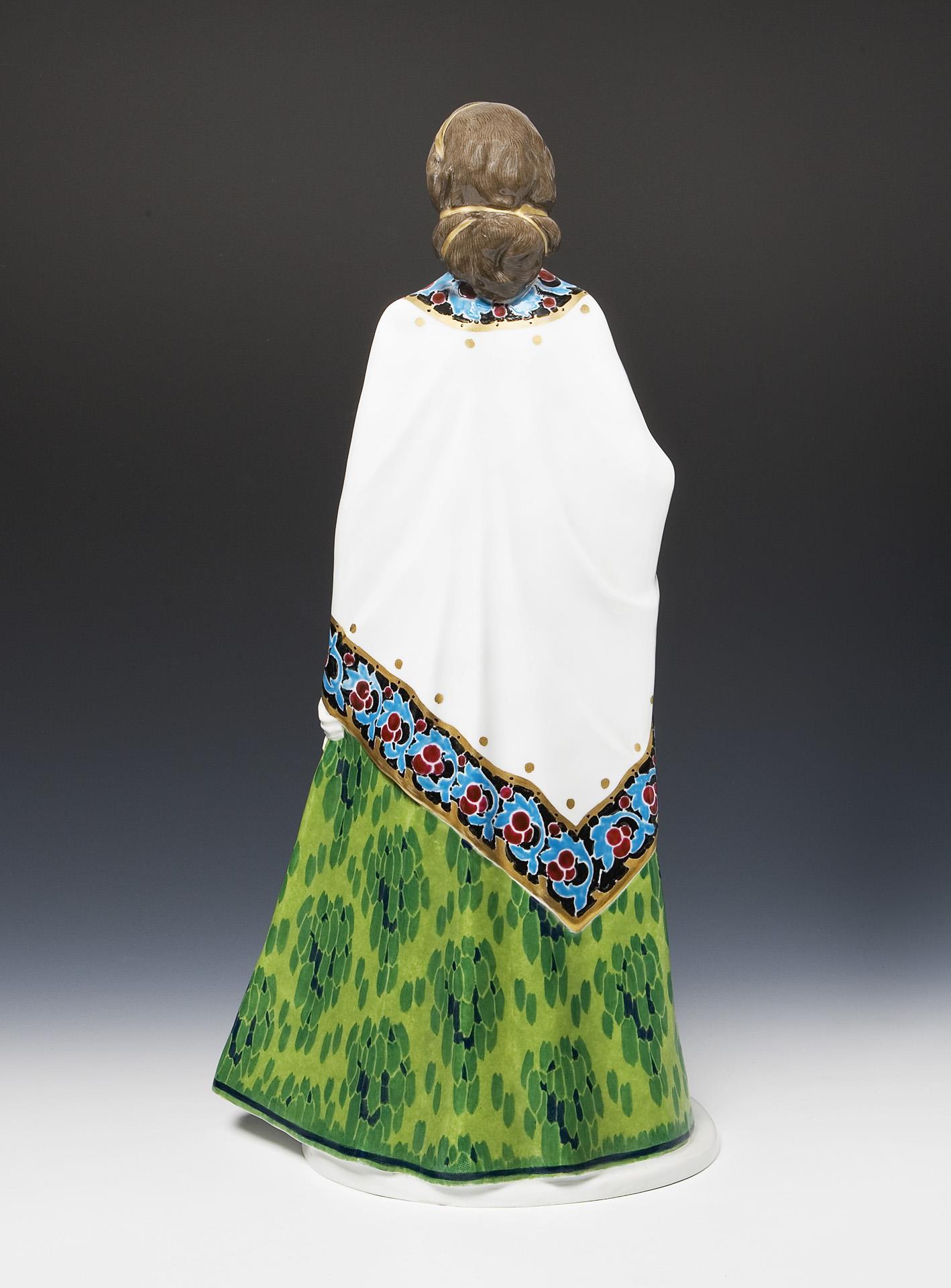 Large Art Nouveau figurine: Lady with cape. Meissen.