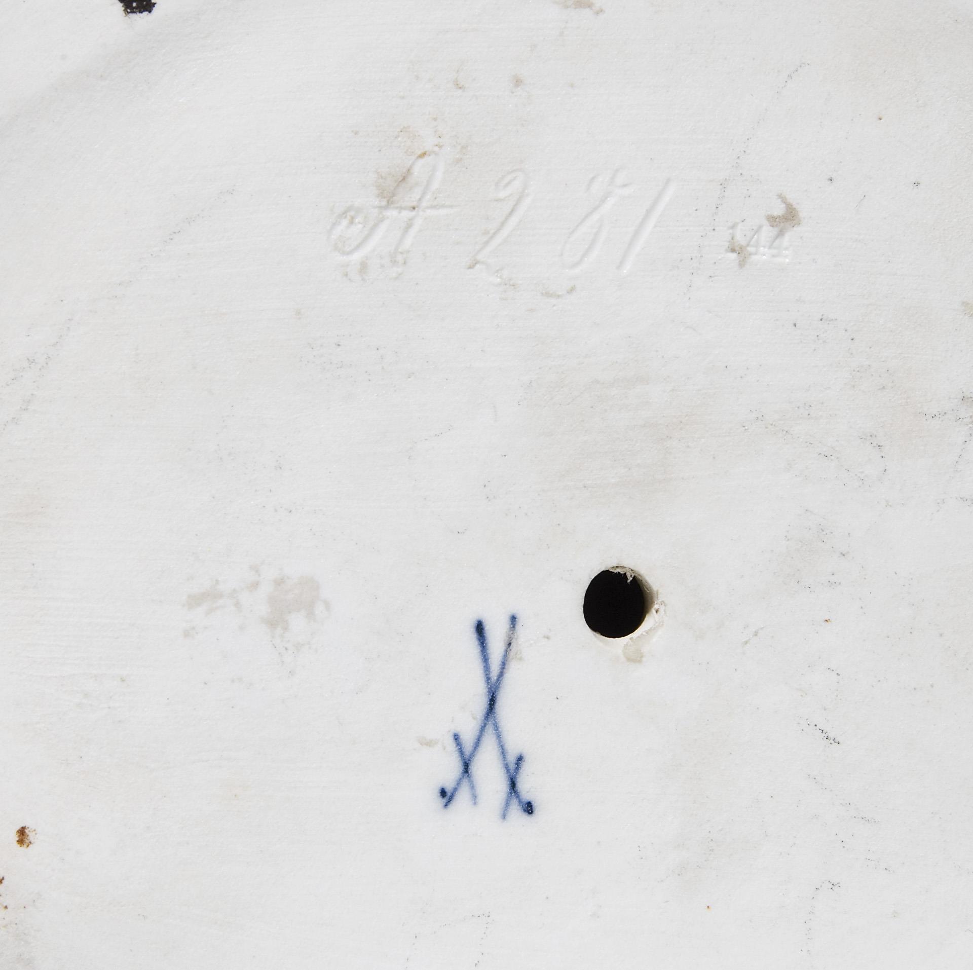 Model year: 1910, painted in color, painted gold. Unglazed base, incised mark, sword mark.