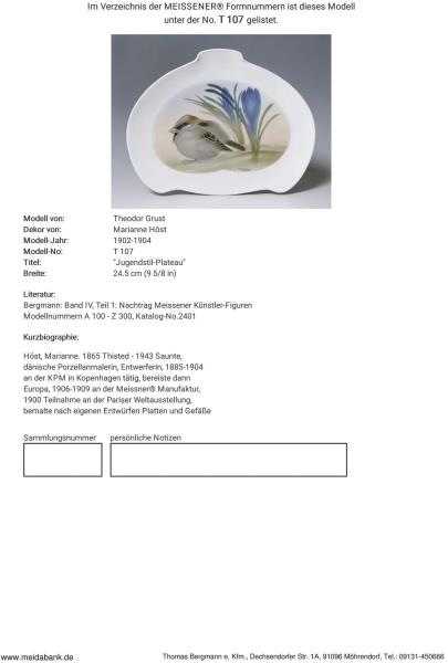 Hoest, Danish porcelain painter, designer, worked at KPM Copenhagen 1885-1904, then traveled Europe, worked at the Meissen manufactory 1906-1909, she painted various vessels according to her own designs * Partnerauktion Bergmann.