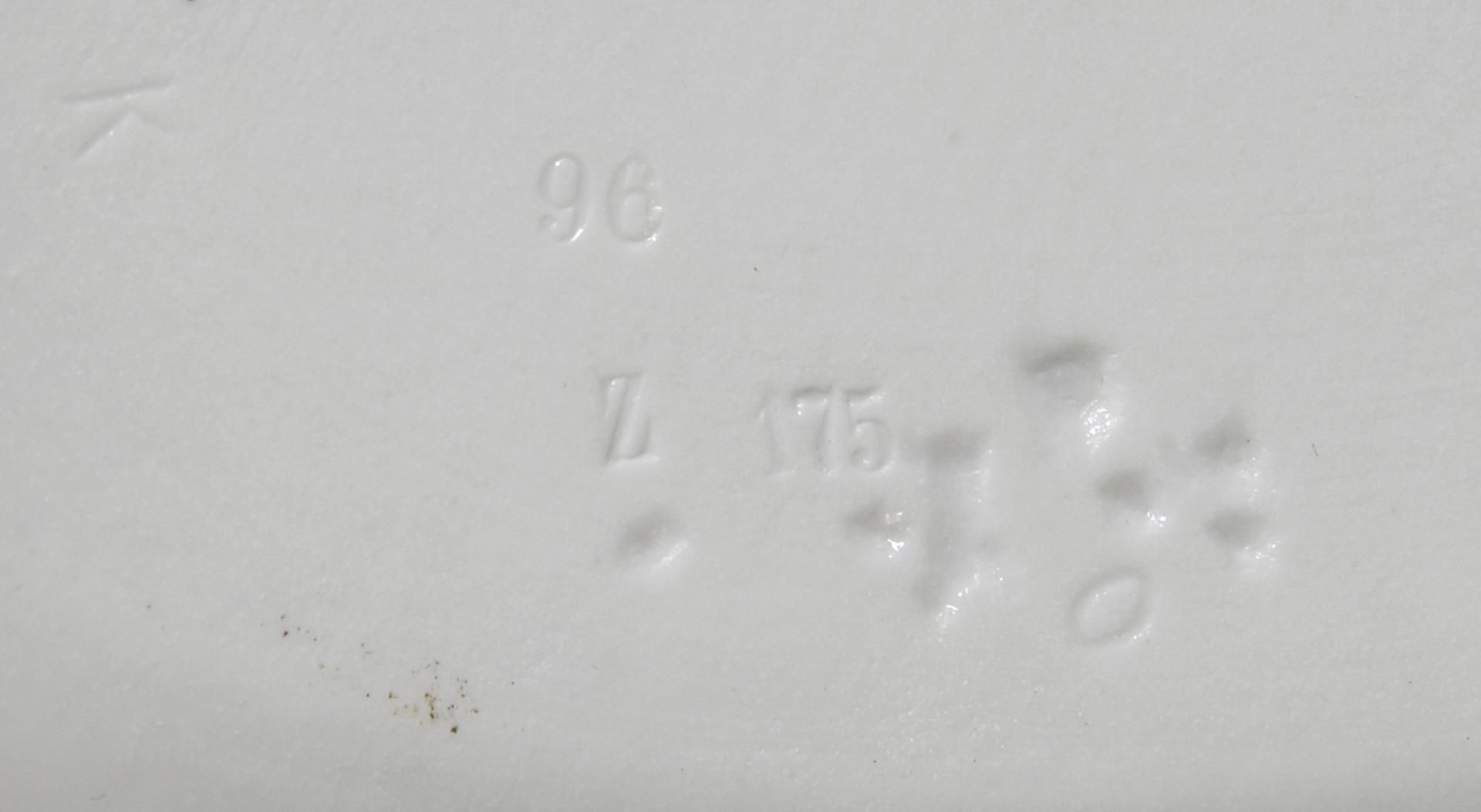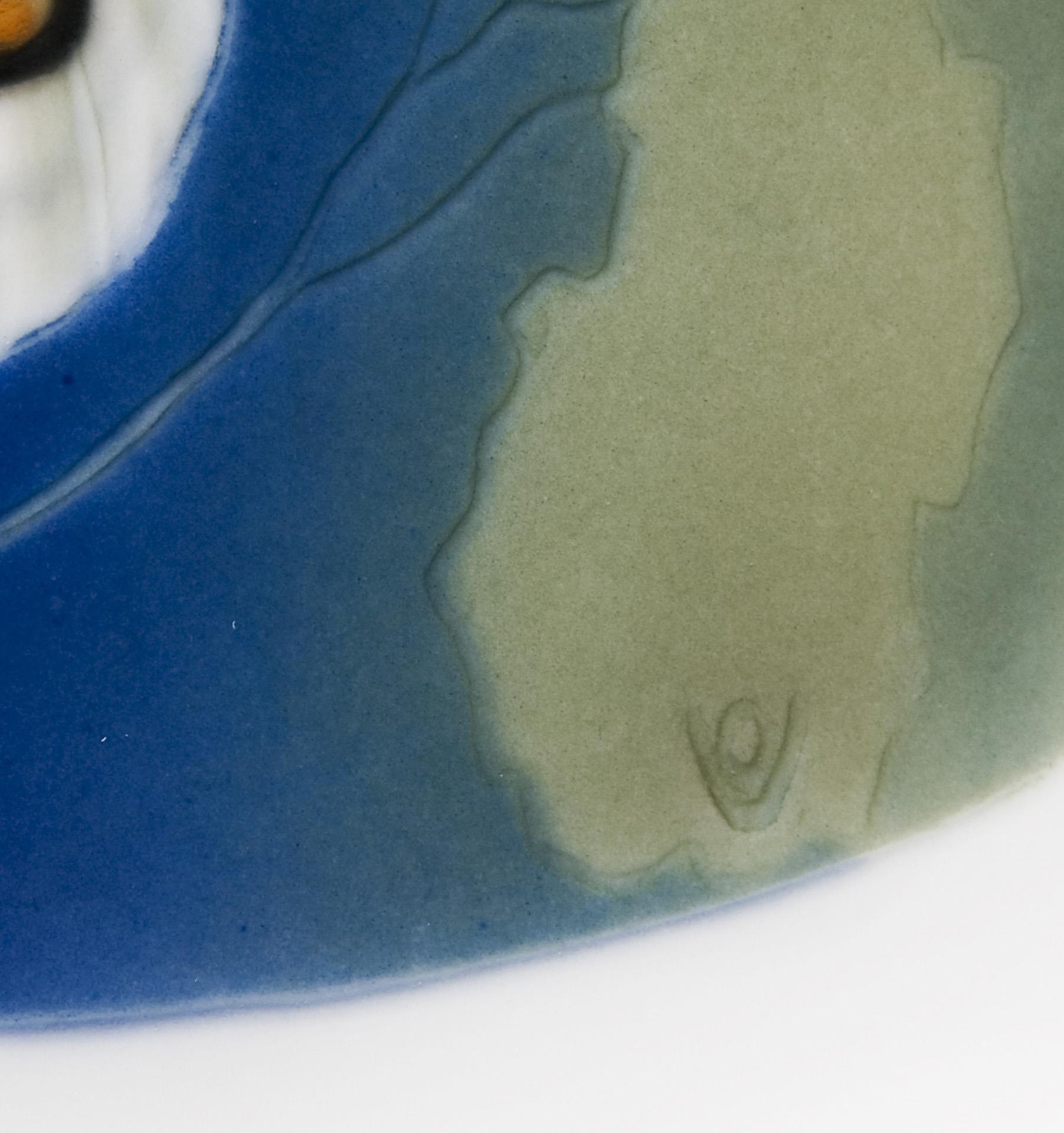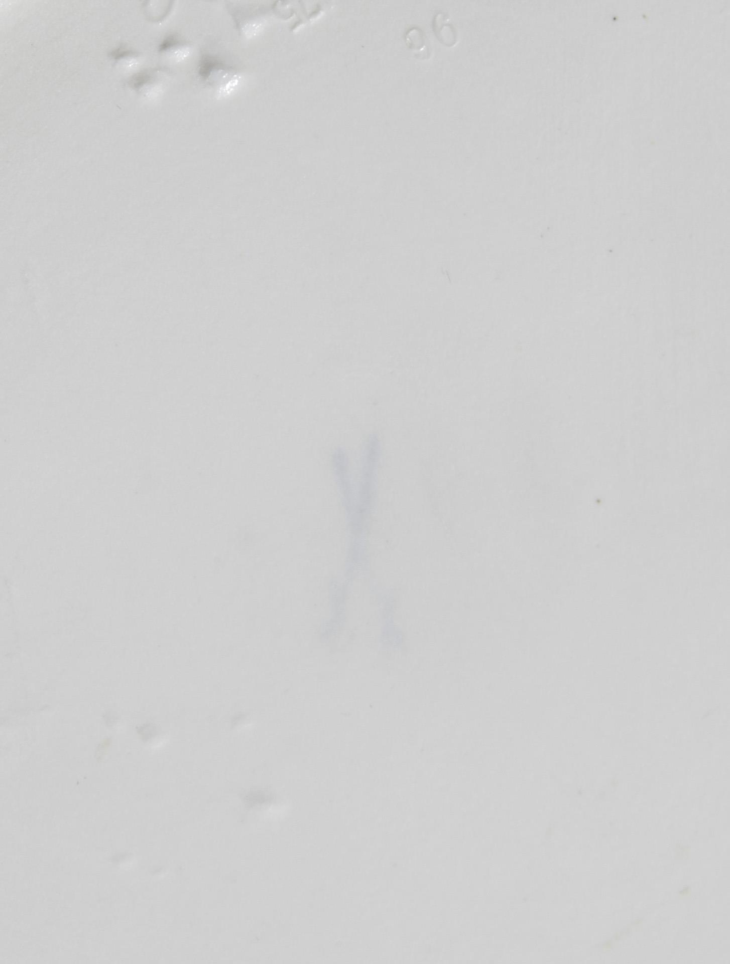 Model year: 1909, colored underglaze painting, relief. Unglazed base, impressed marks, faded sword mark, artist's signet in the motif.