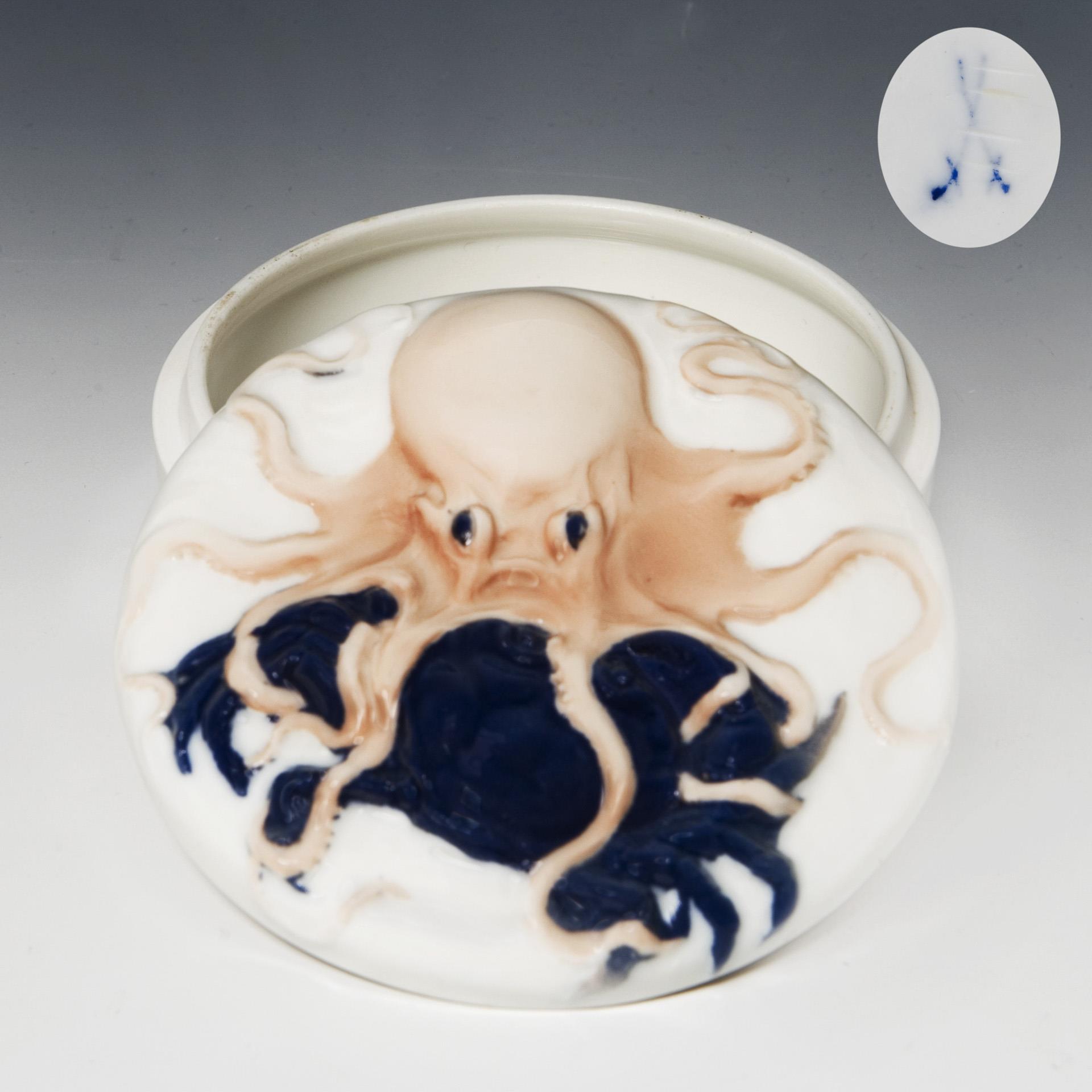 Can with octopus and crab. Meissen.