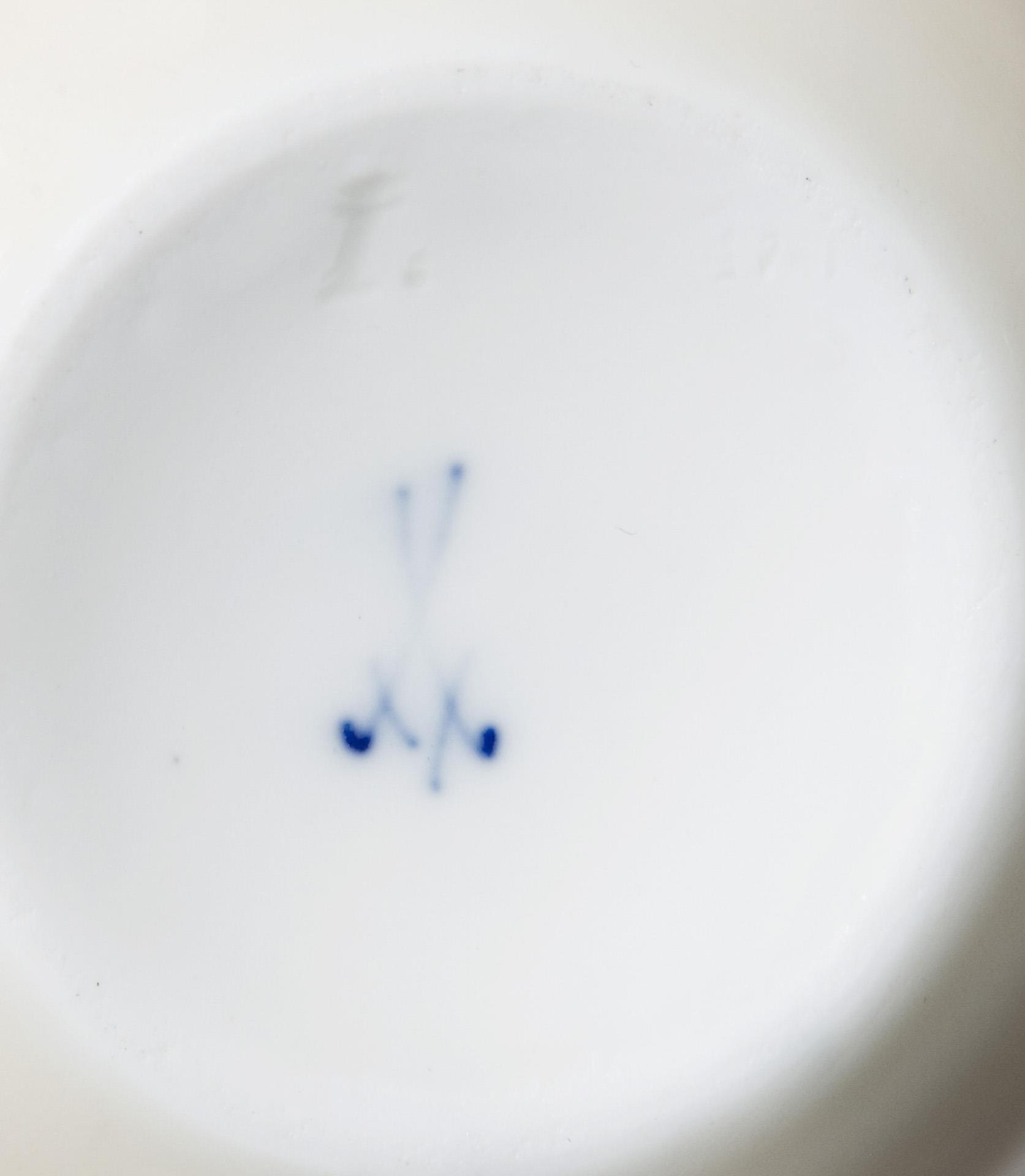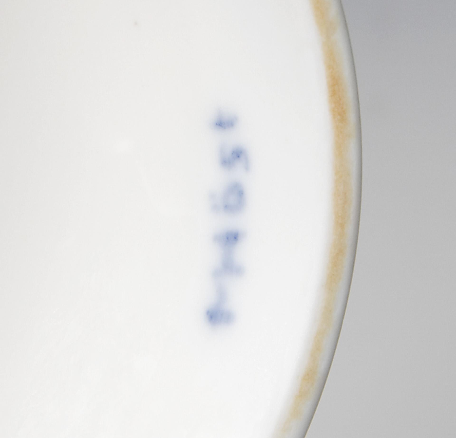 Model year: 1906-1909, sand-colored ground, colored underglaze painting. Press mark, sword mark, inner lid with artist's signet. Lid rim minimally bumped, wall with glaze dots.