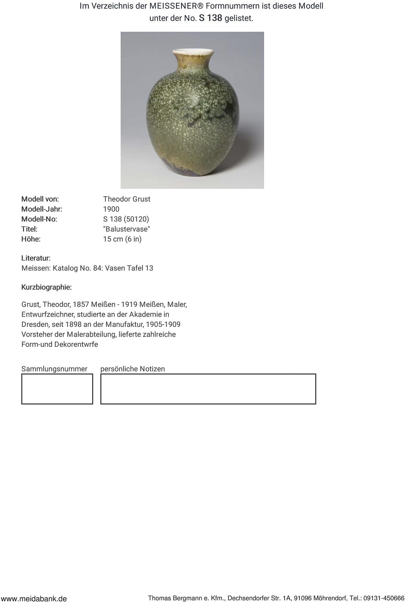 Grust, painter, draughtsman, studied at the academy in Dresden. From 1898 at the Meissen manufactory, 1905-1909 head of the painting department, provided numerous designs for shapes and decorations * Partner auction Bergmann.