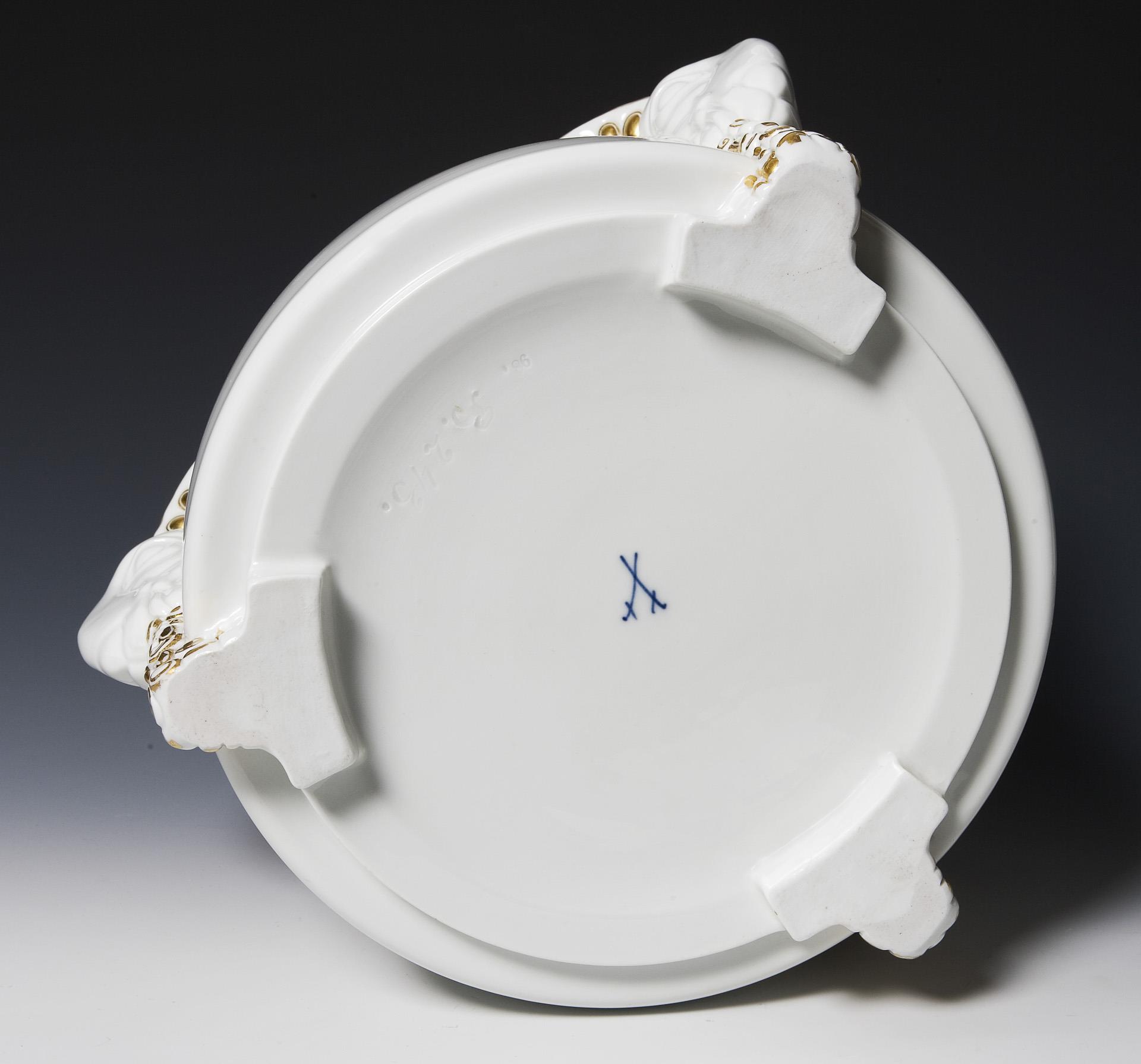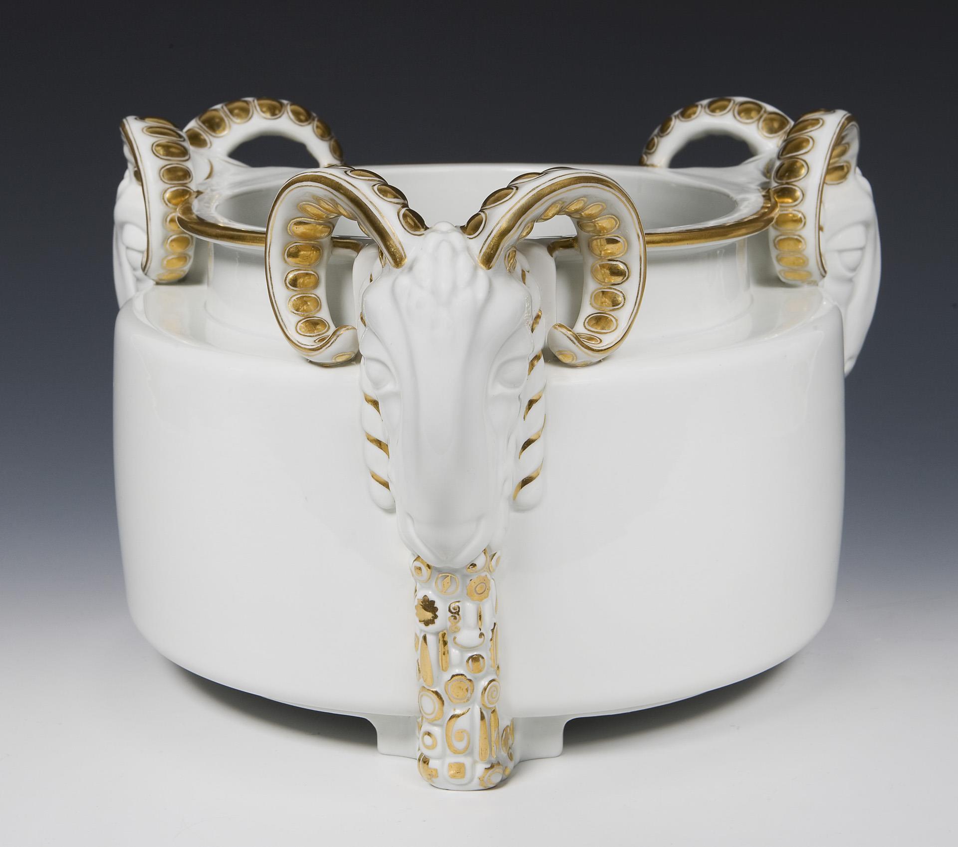 Art Nouveau cachepot with sculpted ram's heads. Meissen.