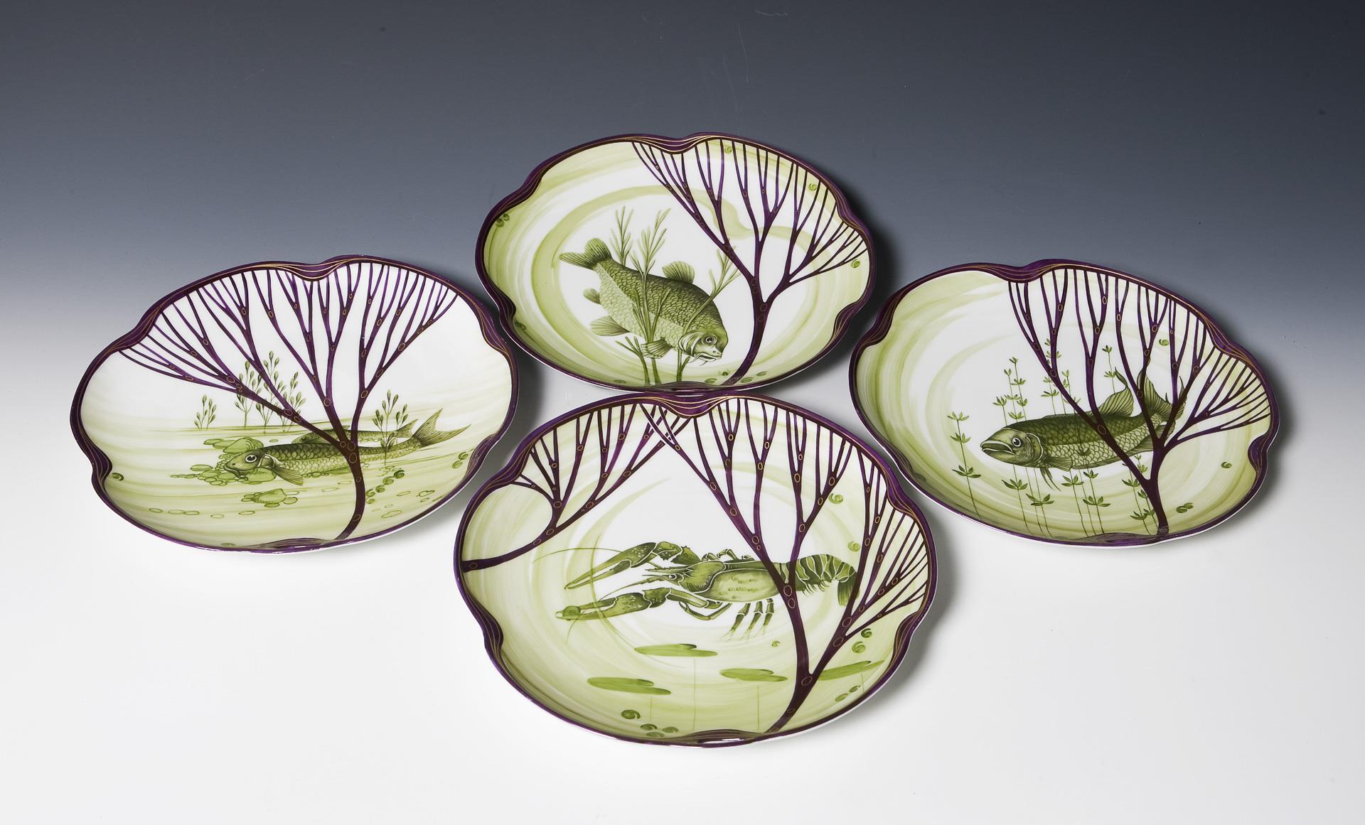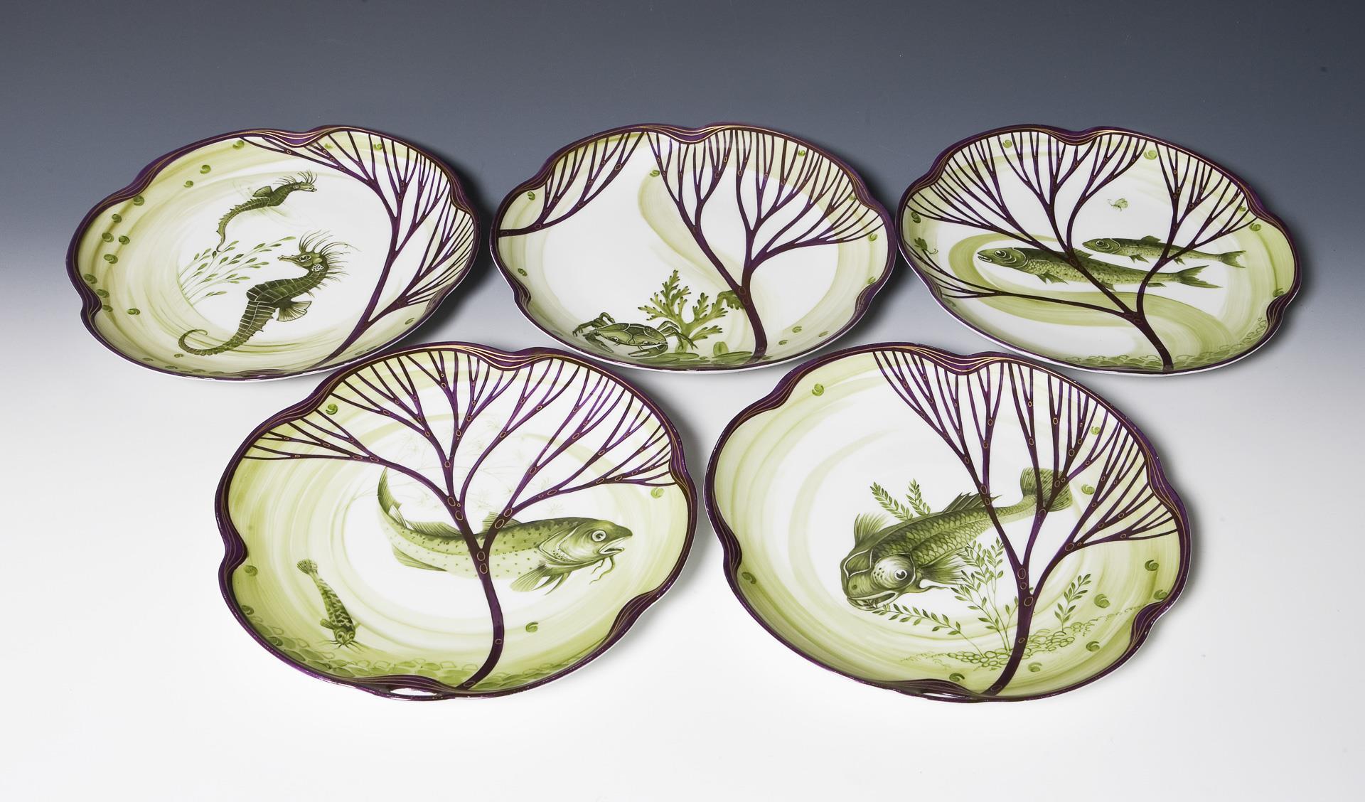 Set of 9 Art Nouveau fish plates: Belle Epoque. Nymphenburg.