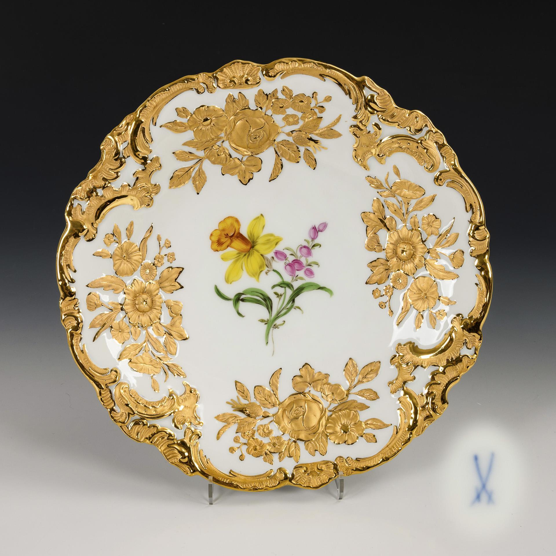 Bowl with rocaille rim and flower bouquets in relief. In the mirror the depiction of a daffodil.
