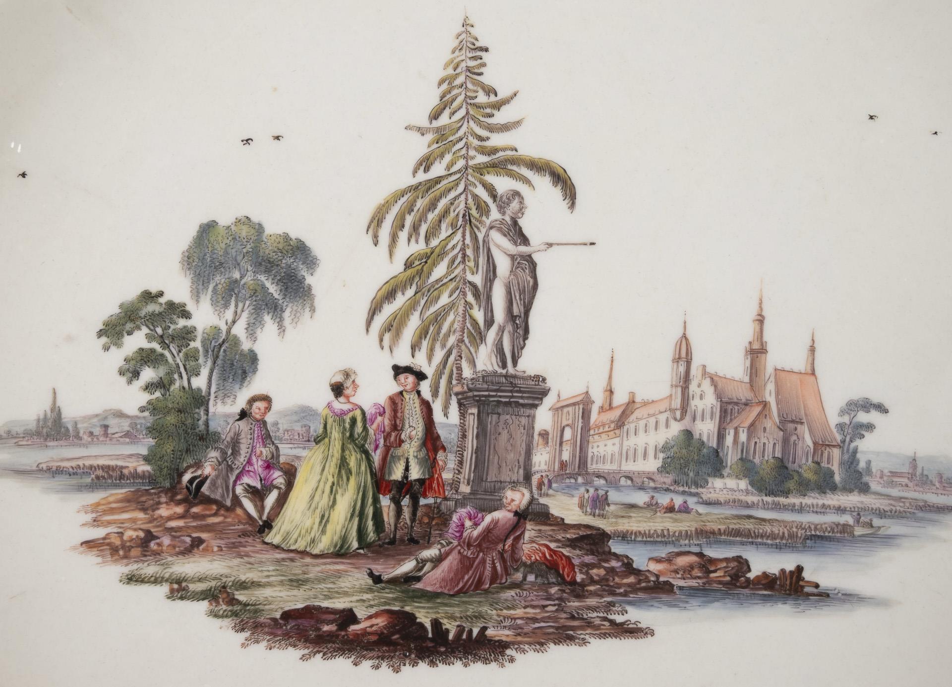 Baroque plate with Watteau painting. Meissen.