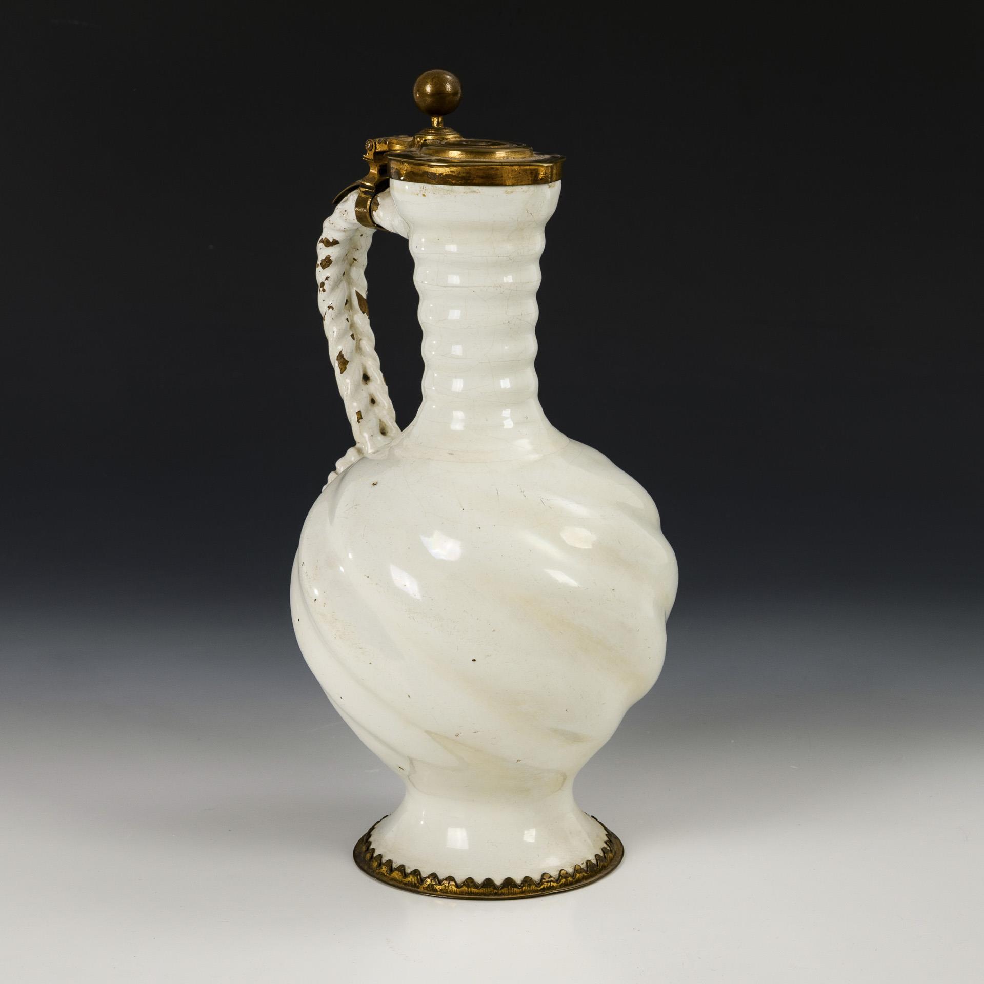 You are here:   Home Categories Ceramics Weiße Fayence-Enghalskanne mit Zinndeckel