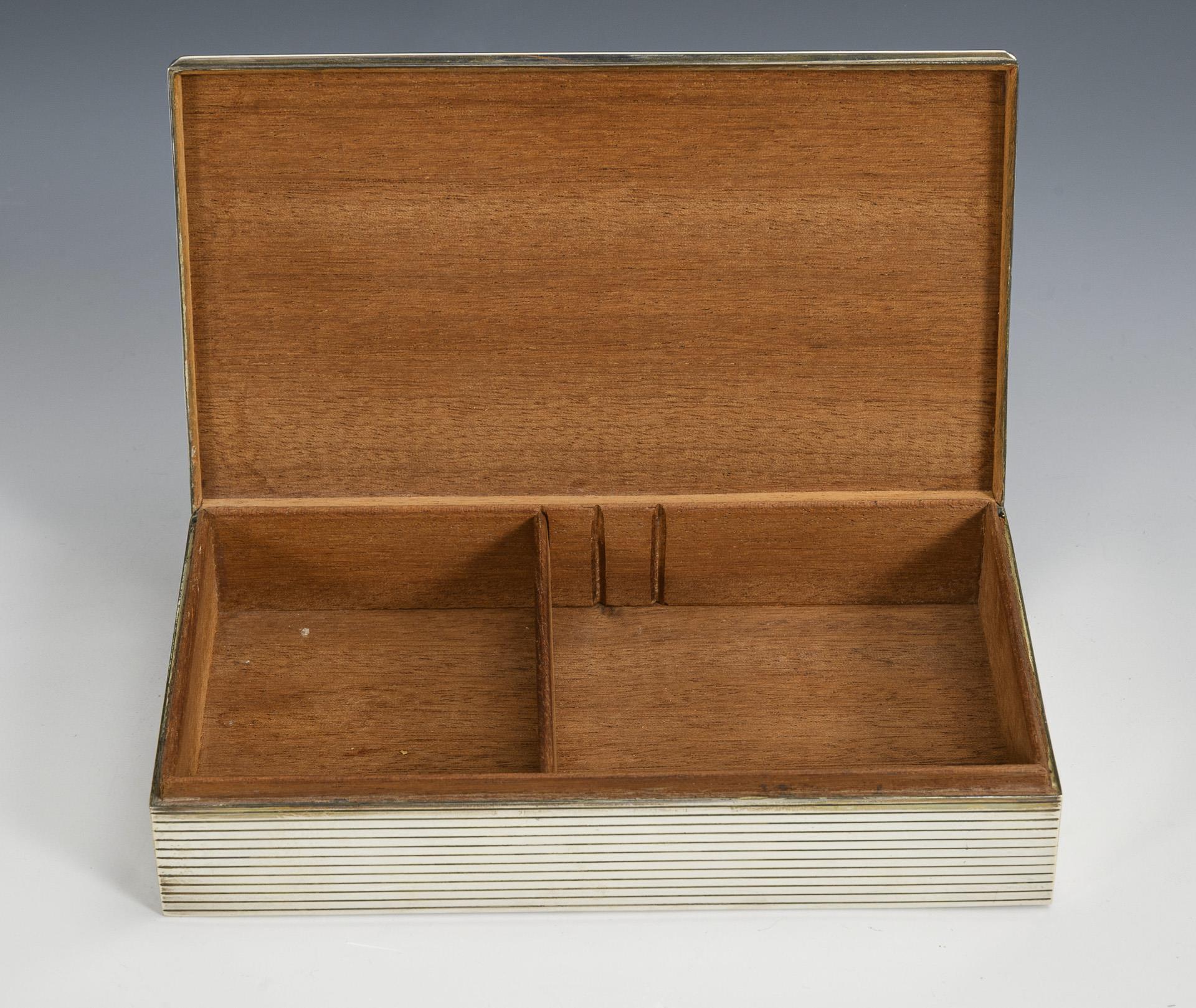 Ribbed silver box (Sterling/925/FS hallmarked) with wooden insert. 4 x 17.5 x 10 cm / Silver seal (Georg Jensen/830 S hallmarked). Somewhat dented. H 8.5 cm.