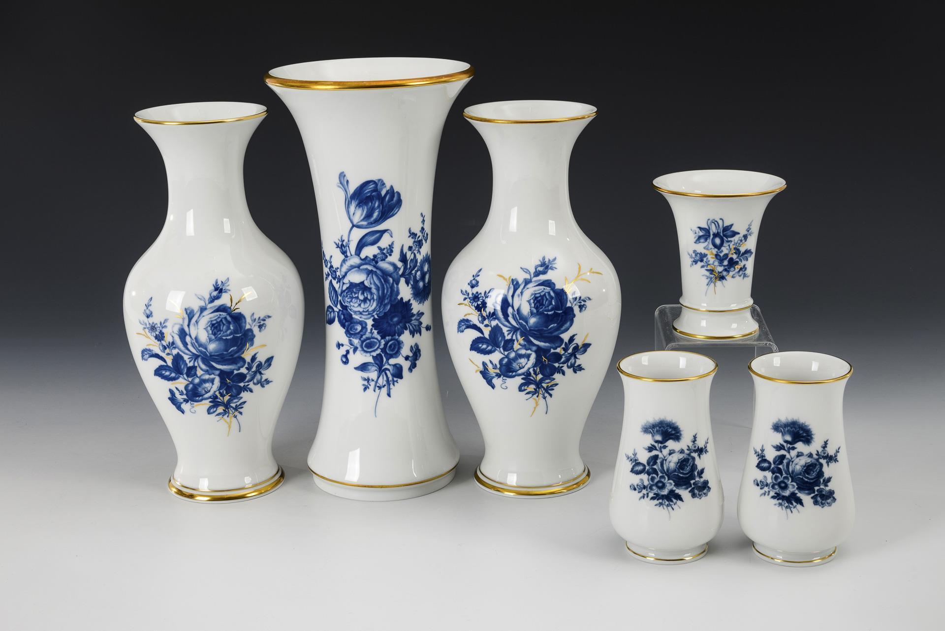 6 vases "Blue Flower". Meissen.