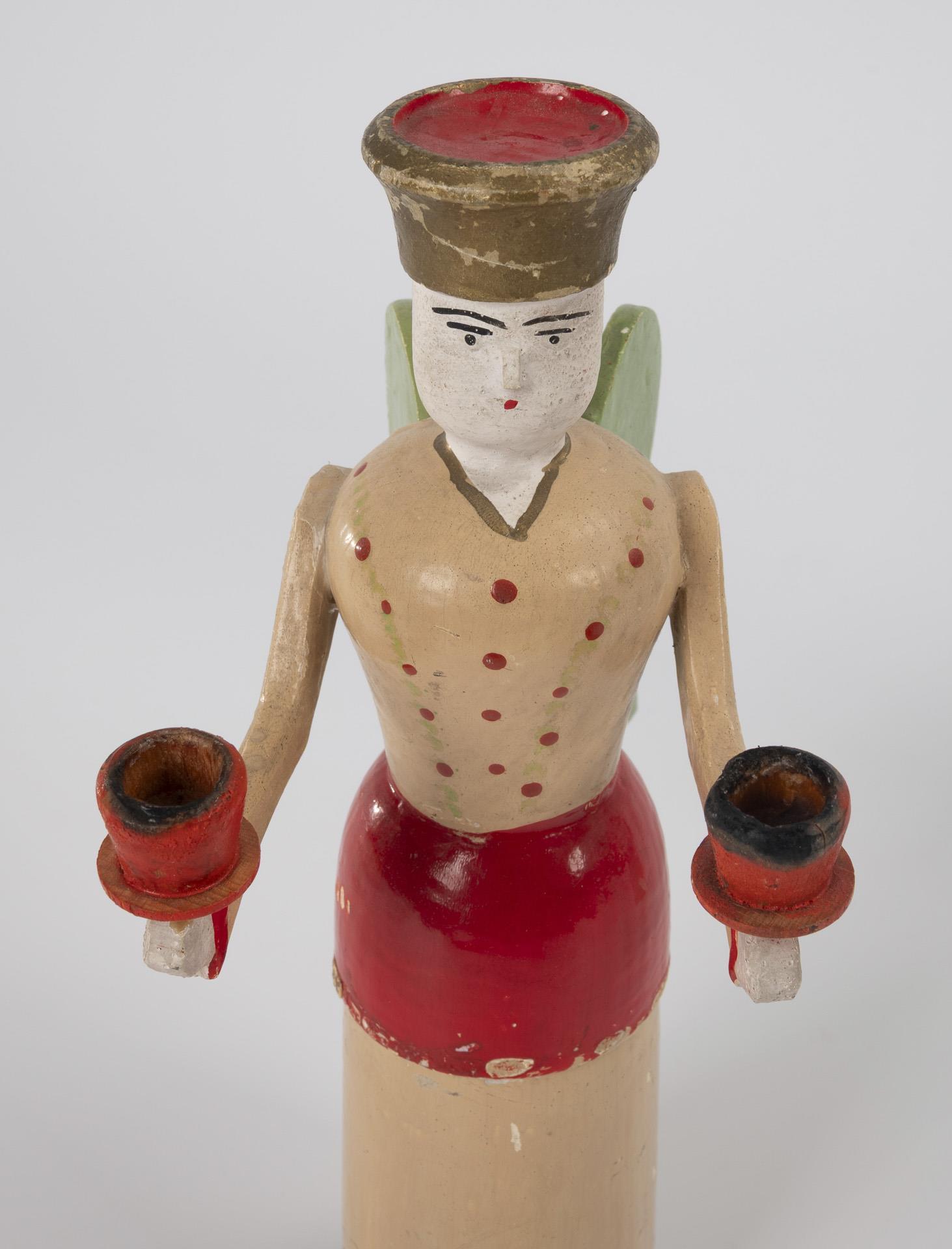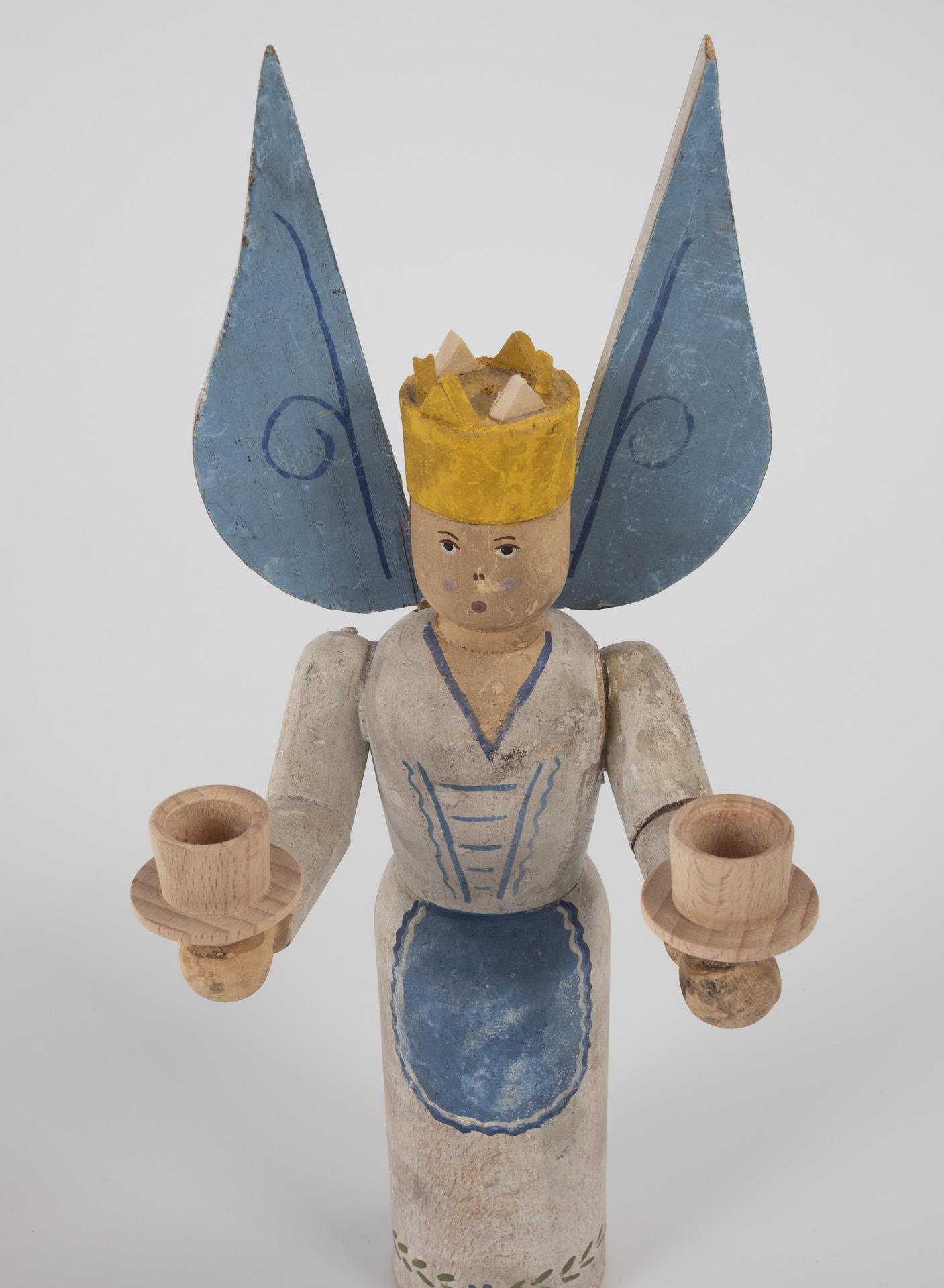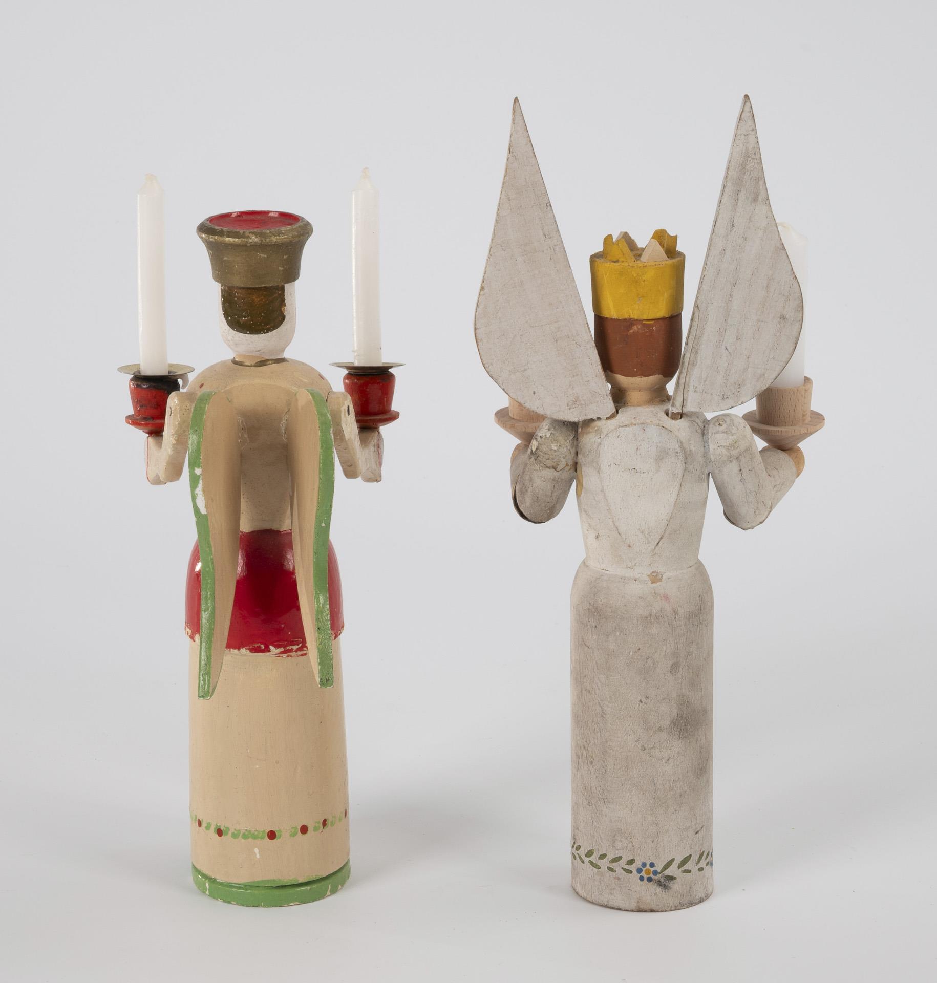 1x with green wings and curved arms (Timmel family from Kühnhaide), h 24 cm. 1x with blue wings (central Erzgebirge), H 29 cm. With defects and additions.