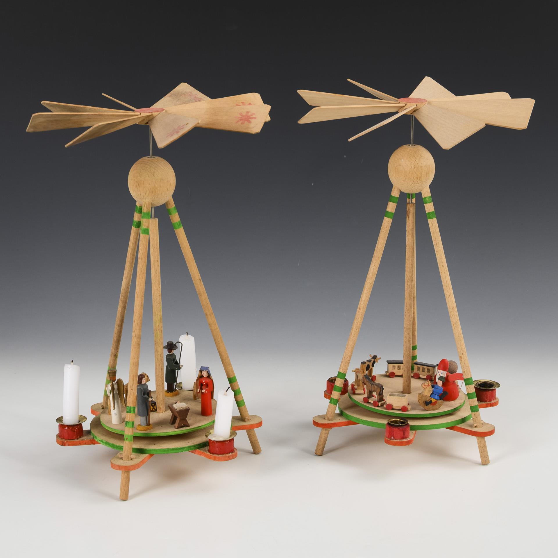 2 stick pyramids from the Erzgebirge. Günter Flath, Seiffen.