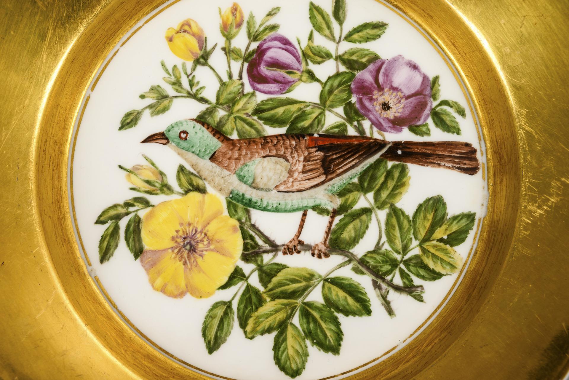 Pair of plates with bird painting. KPM Berlin.