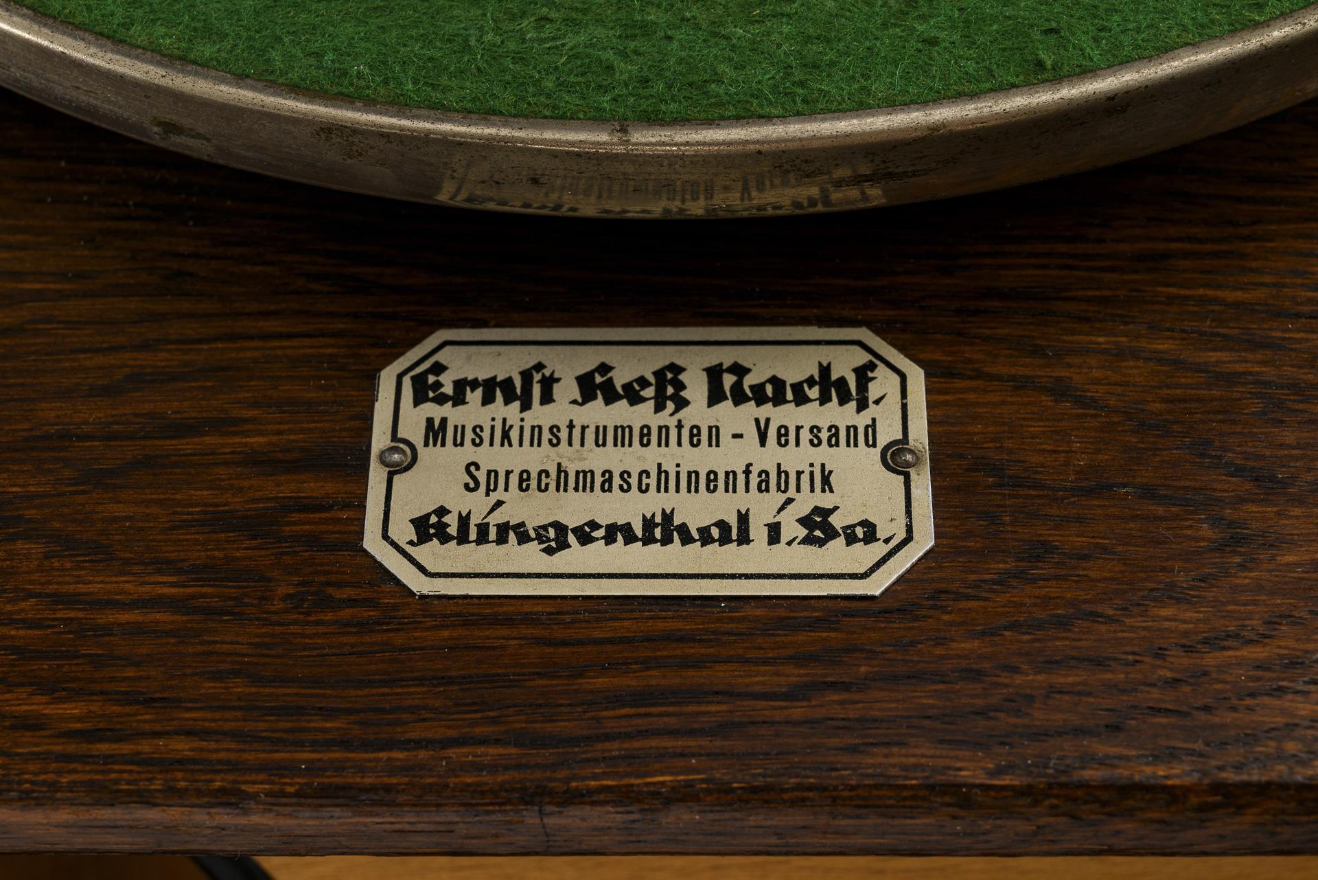 Table gramophone with 21 records. Ernst Heß Nachf., Klingenthal.