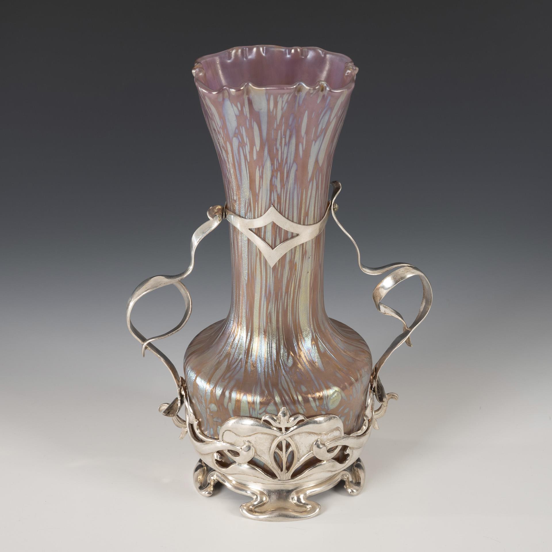 Art Nouveau vase "Phaenomen Genres PG 7766" with silver mount. Loetz.