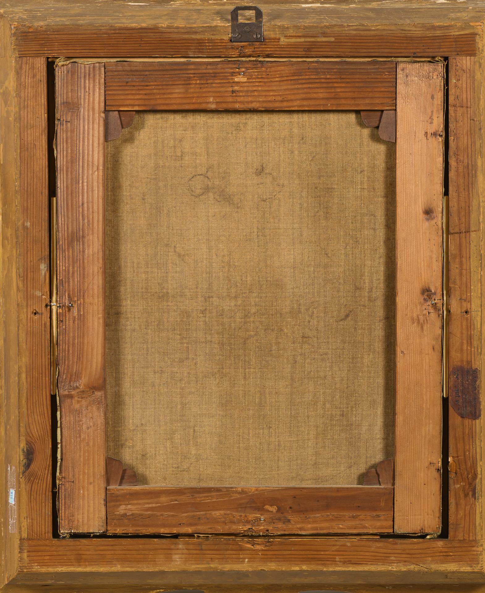 54 x 44 cm. Framed : 75 x 65 cm (gold stucco frame with oval cut-out).