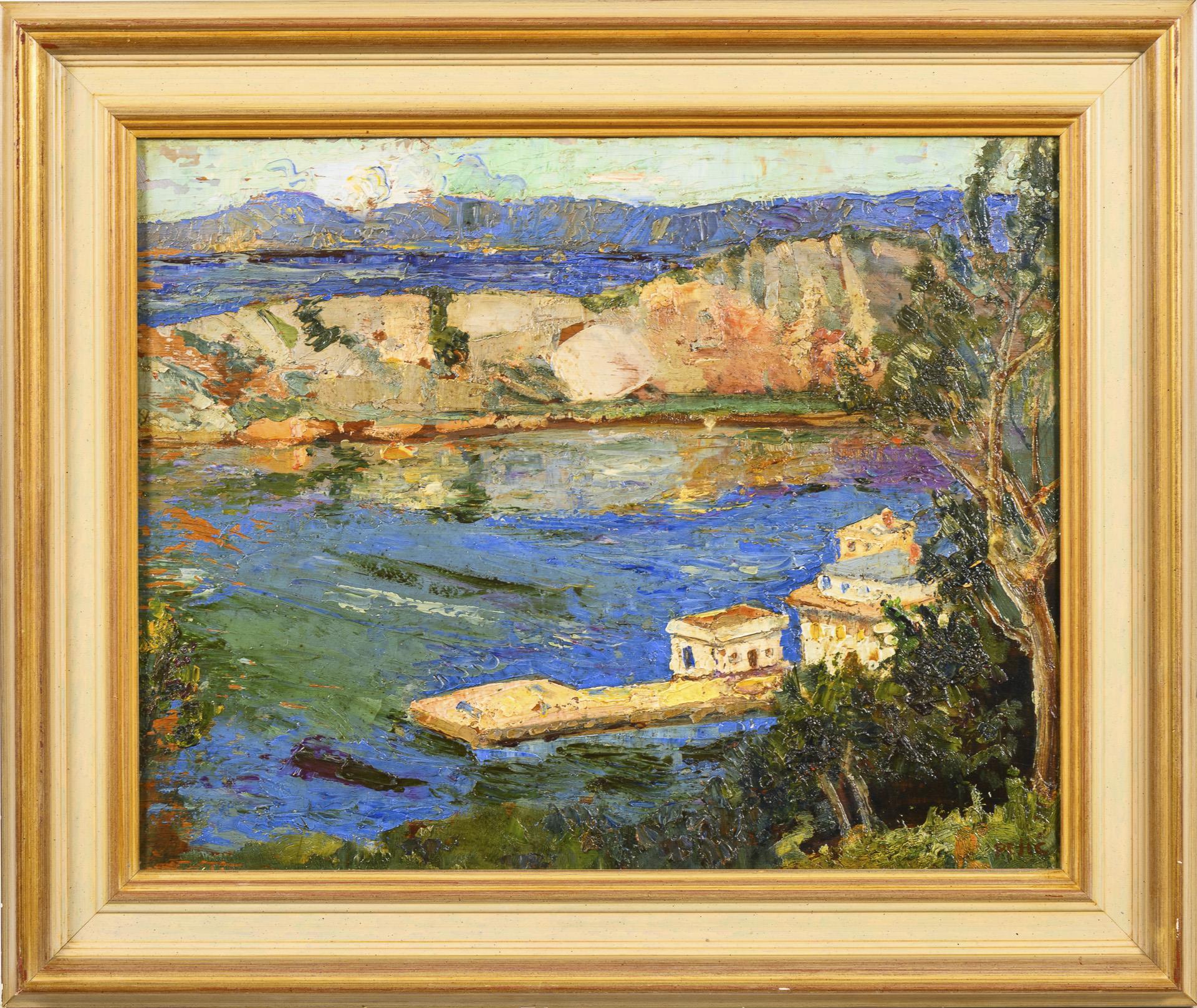 Oil/wood. Signed lower right, verso inscribed. 20th century