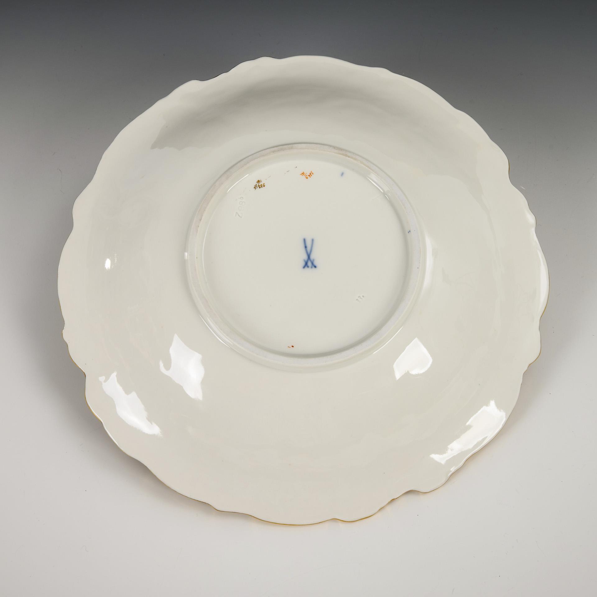 Polychrome painted, decorated in gold. Ø 27.5 cm.