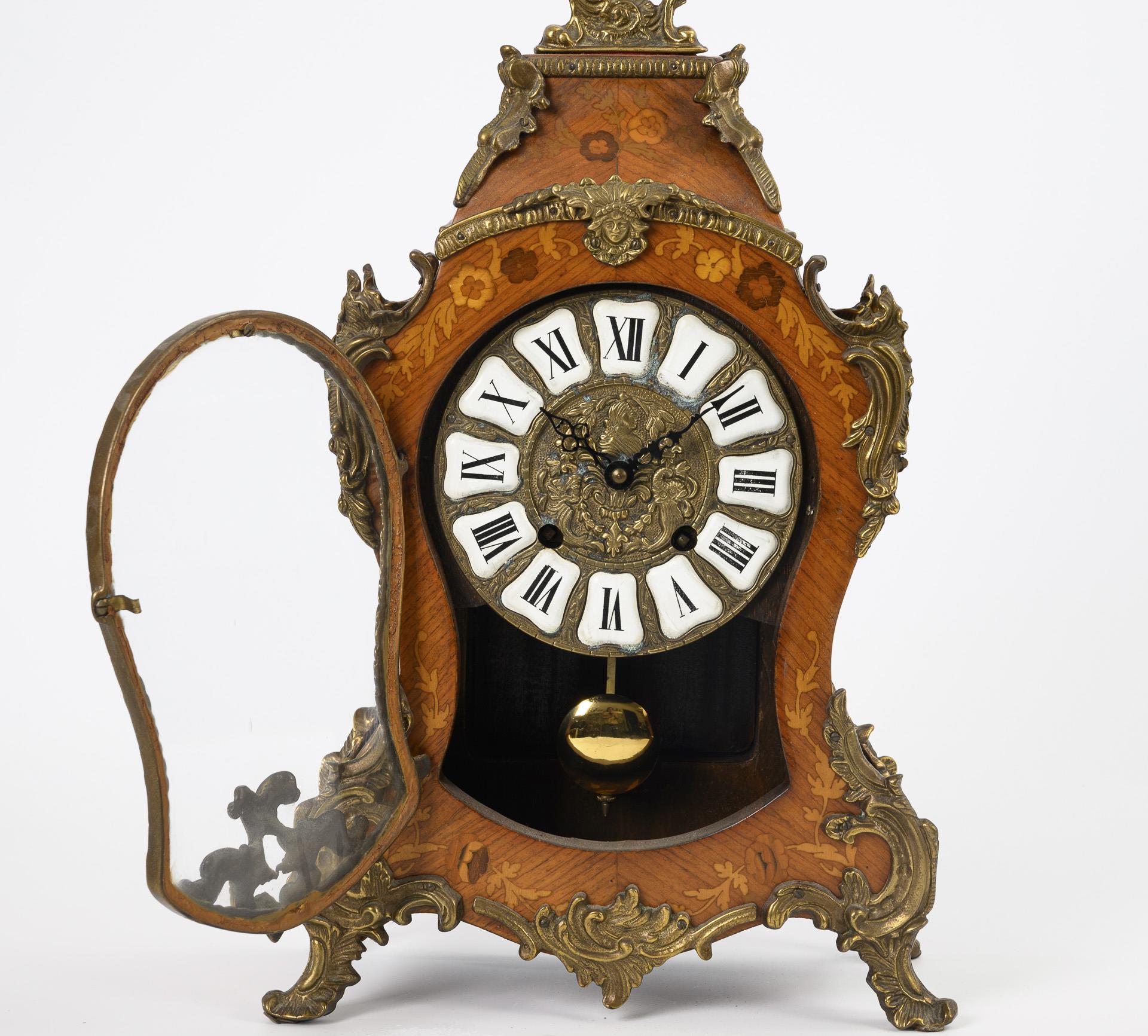 Neo-Baroque commode clock with floral marquetry.