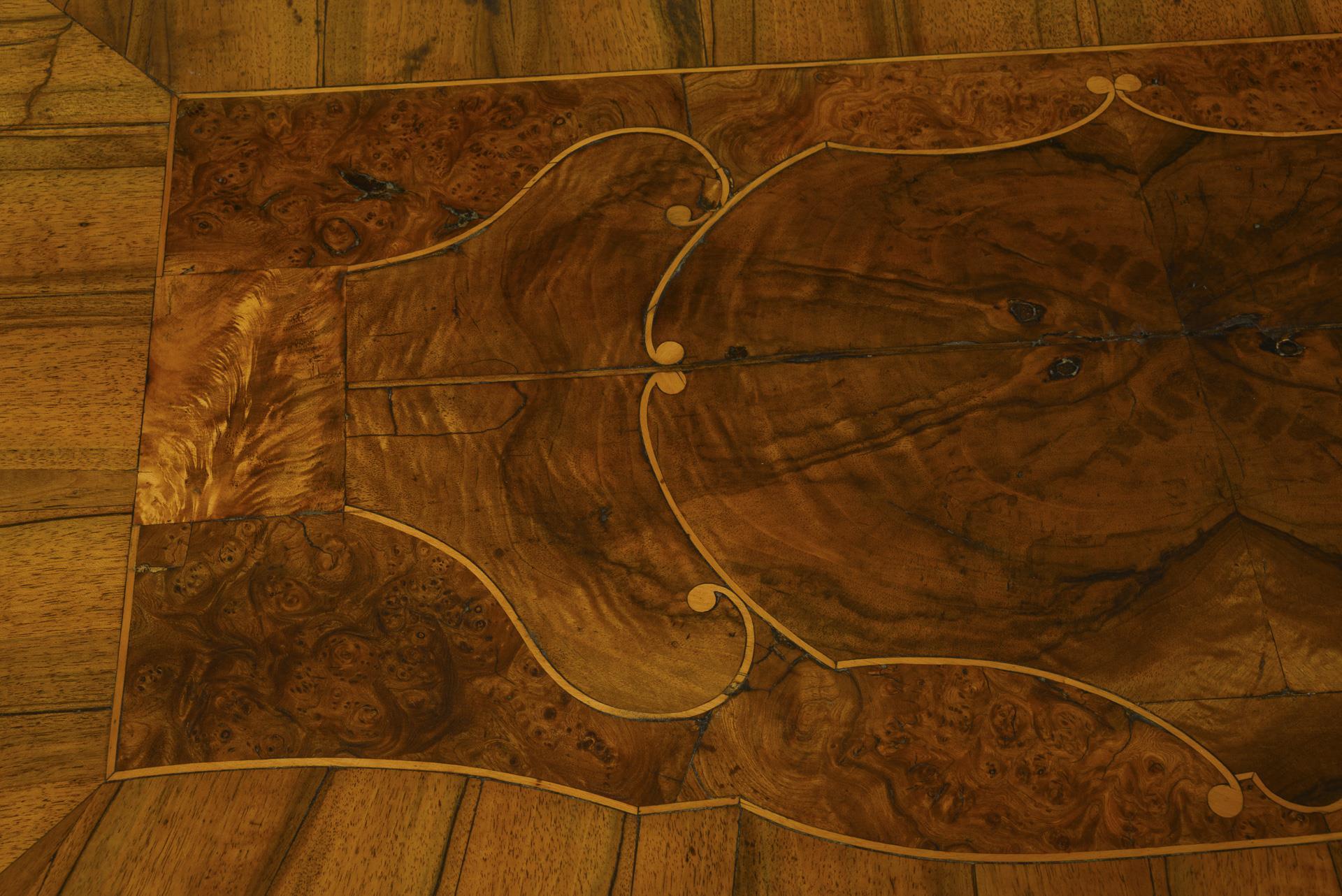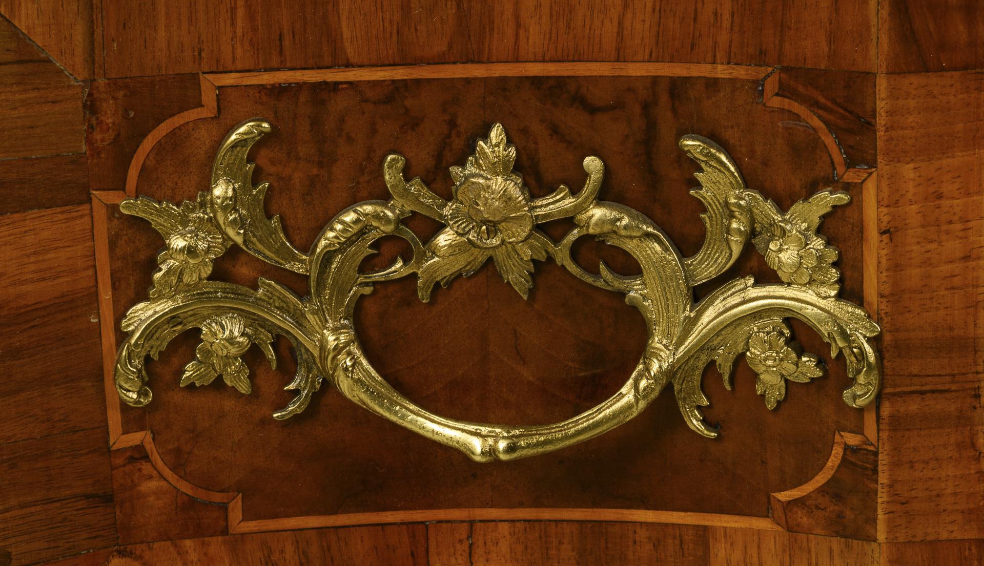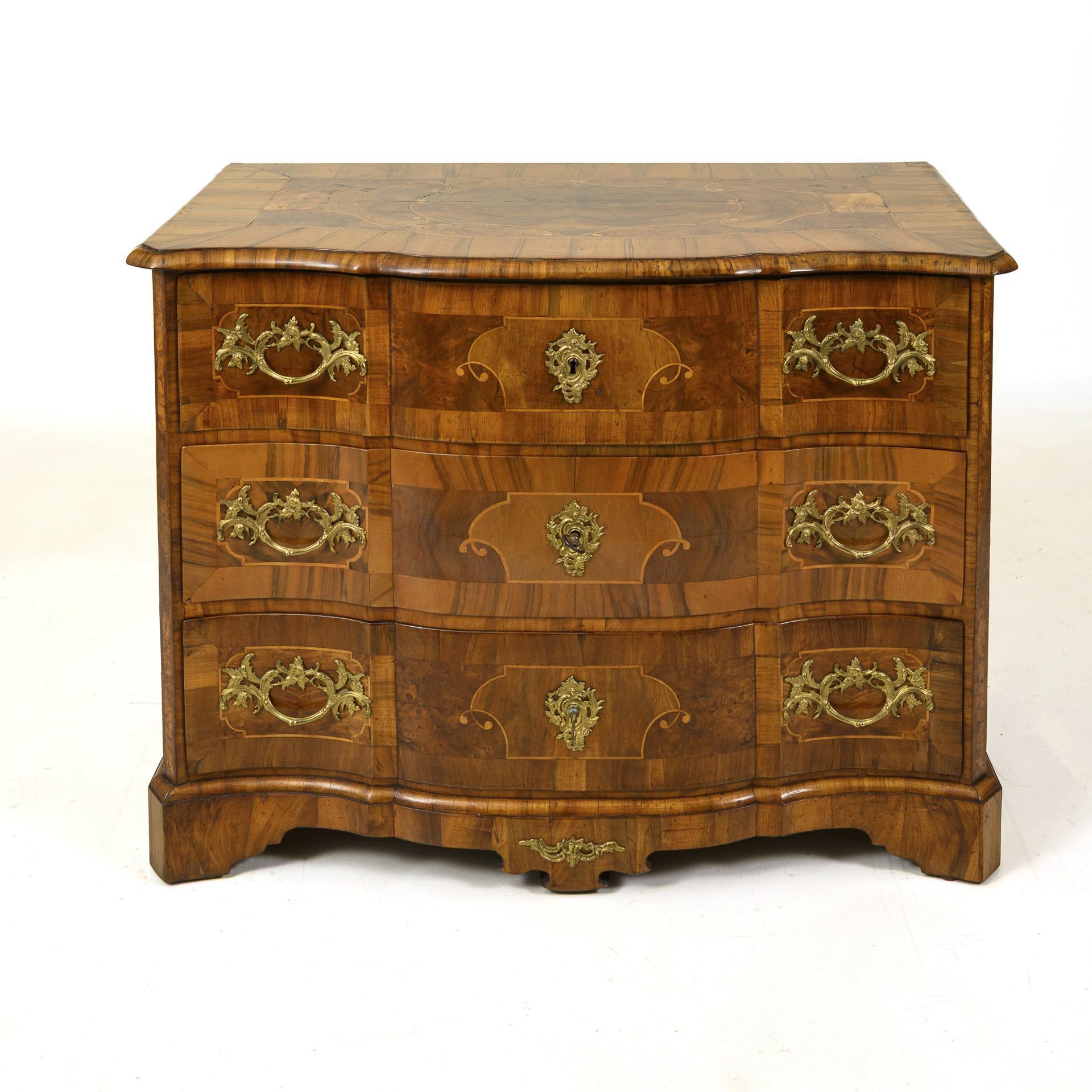 Artfully inlaid baroque chest of drawers.