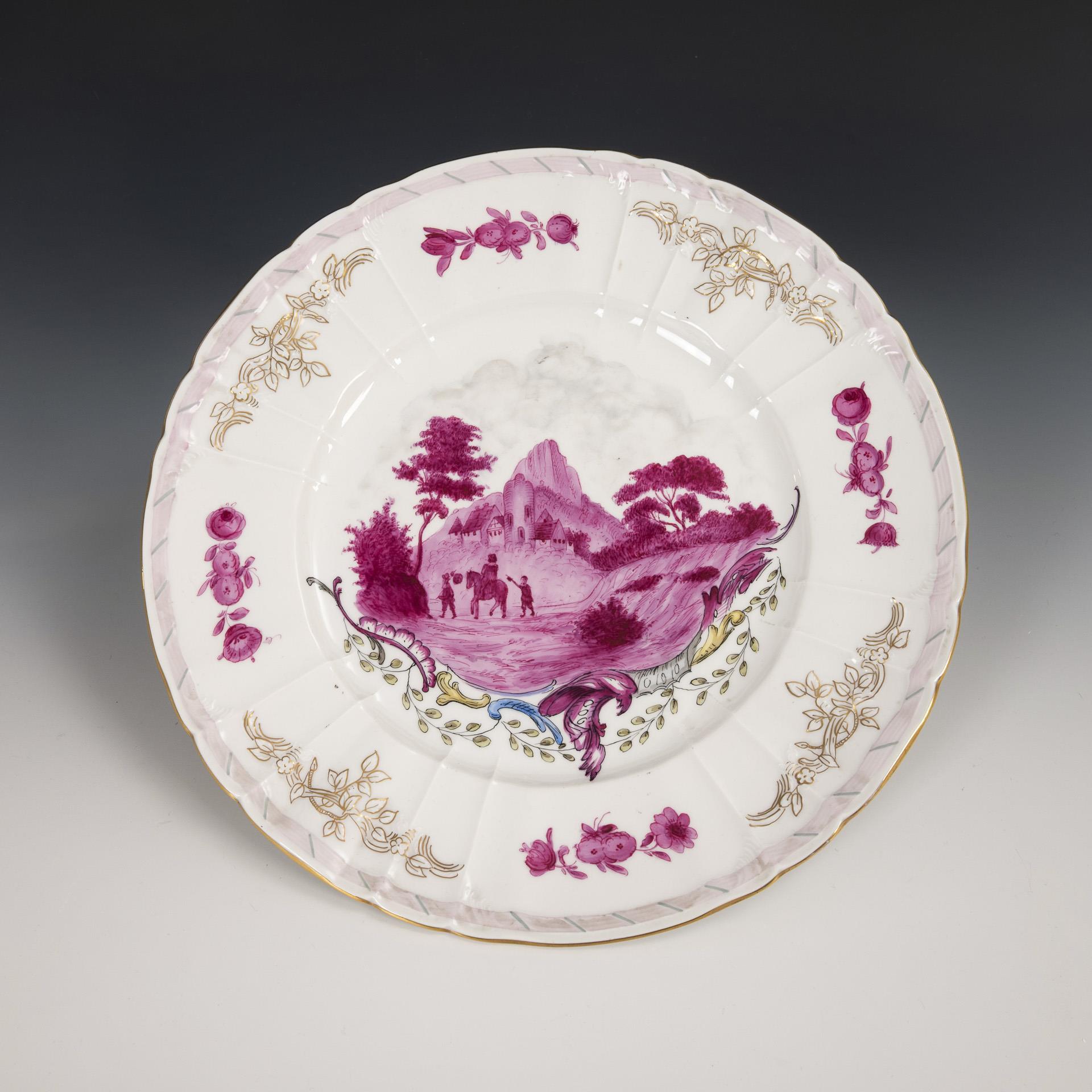 Model "Antikzierat". The mirror depicts a landscape painted in purple camaieu with a rider and two hikers.