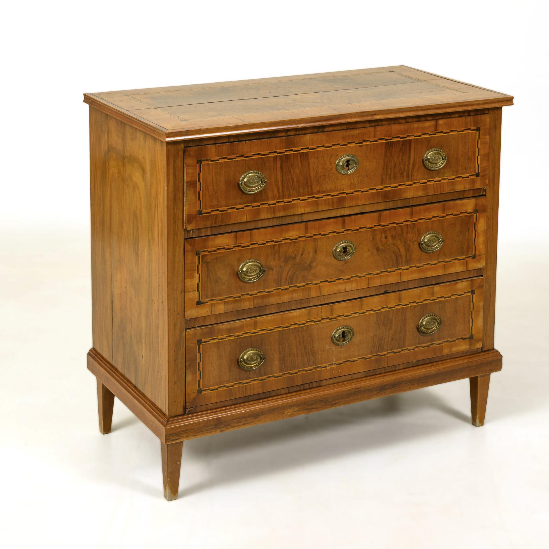 Classical chest of drawers with inlaid bands.