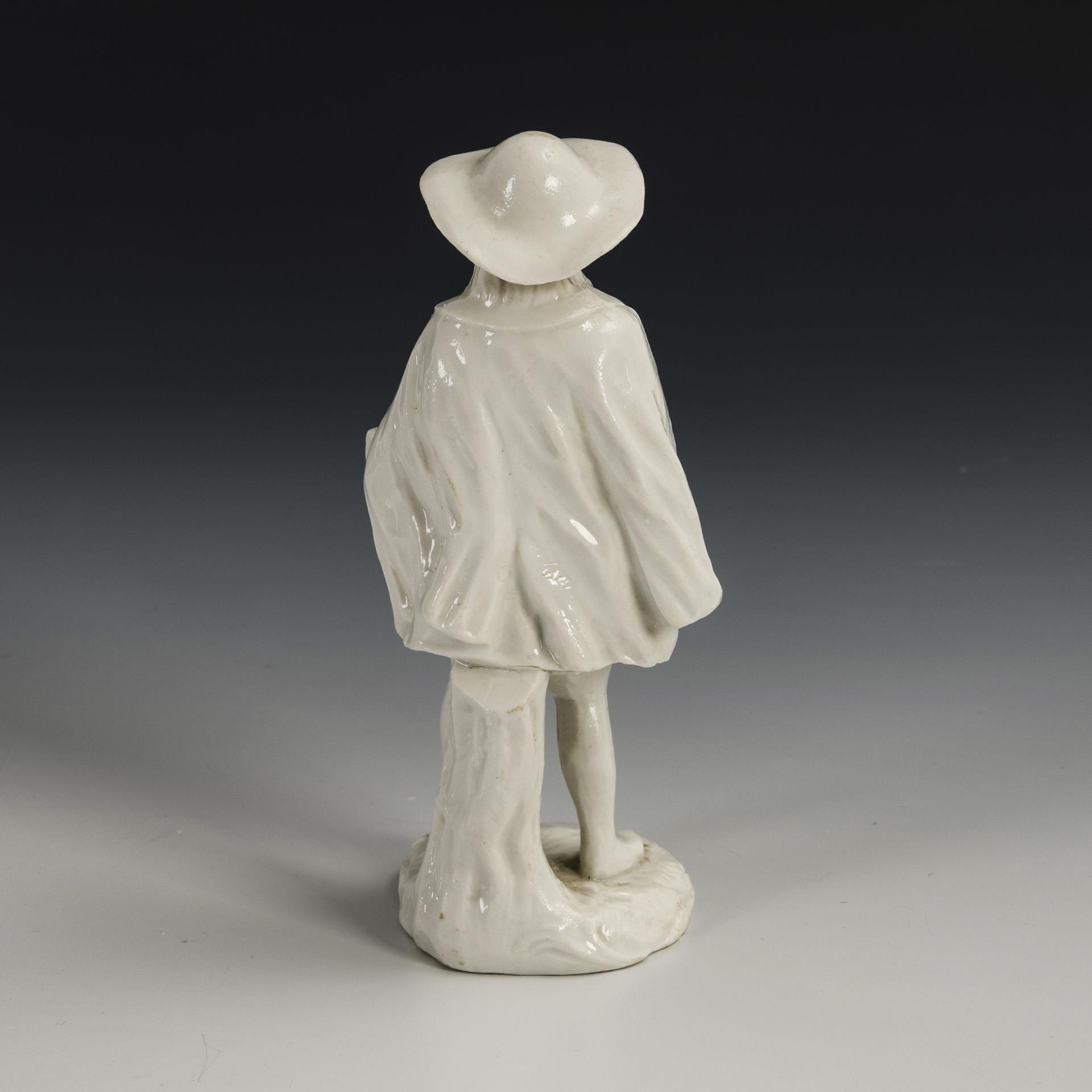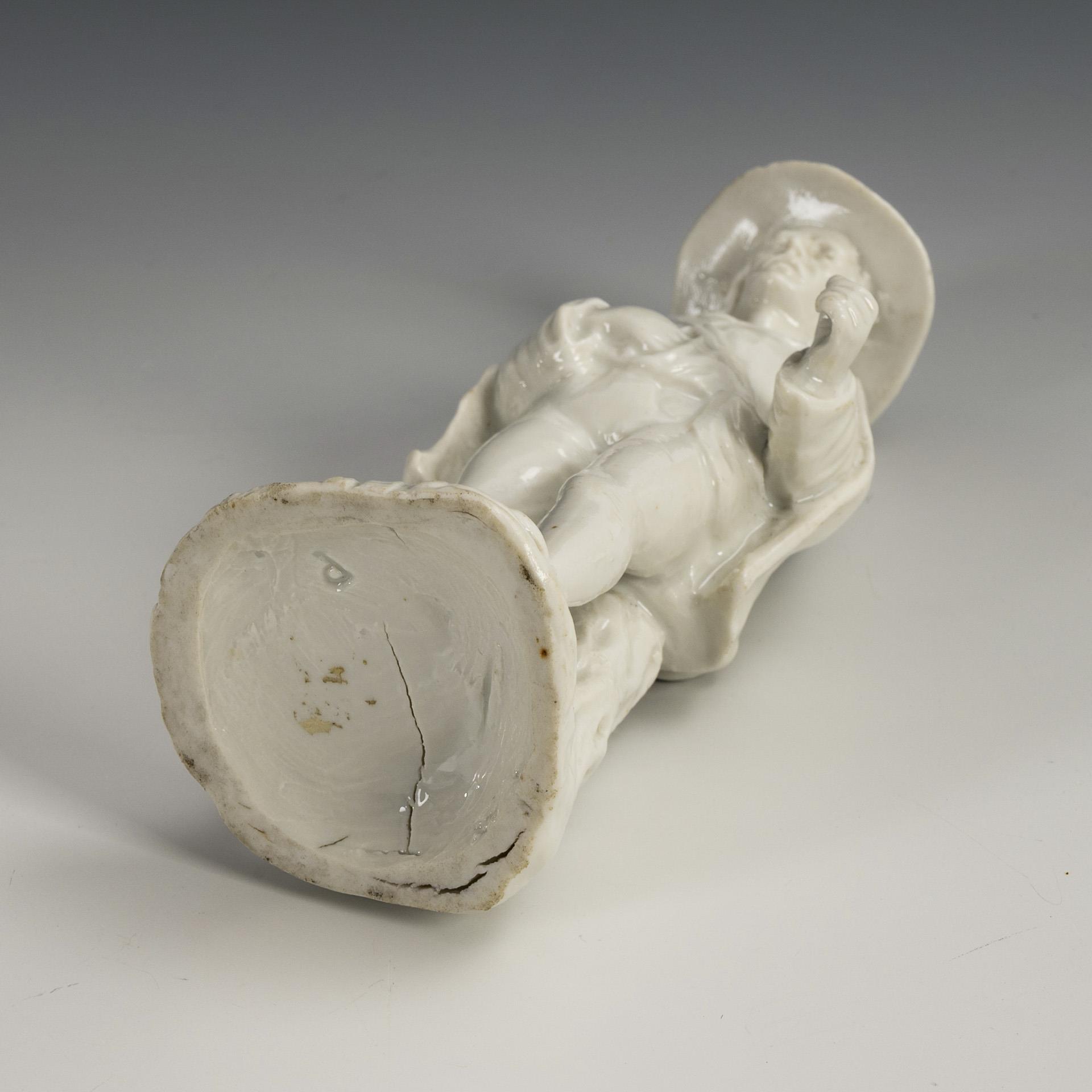 Fire crack on the underside, object (probably a stick) missing in the left hand, minimal chip to the rim of the hat.