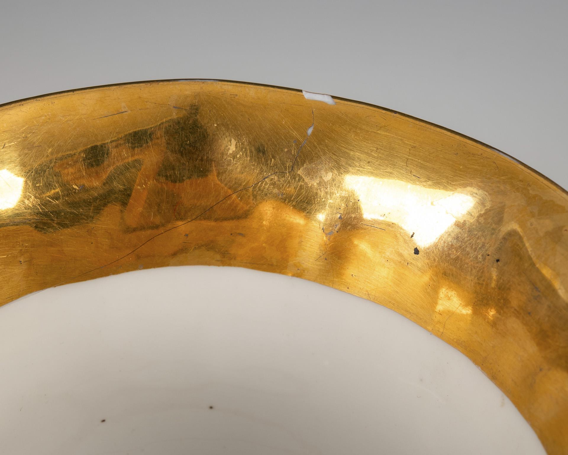 Decorated in gold, 1x polychrome painted. H max. 6.5 cm.