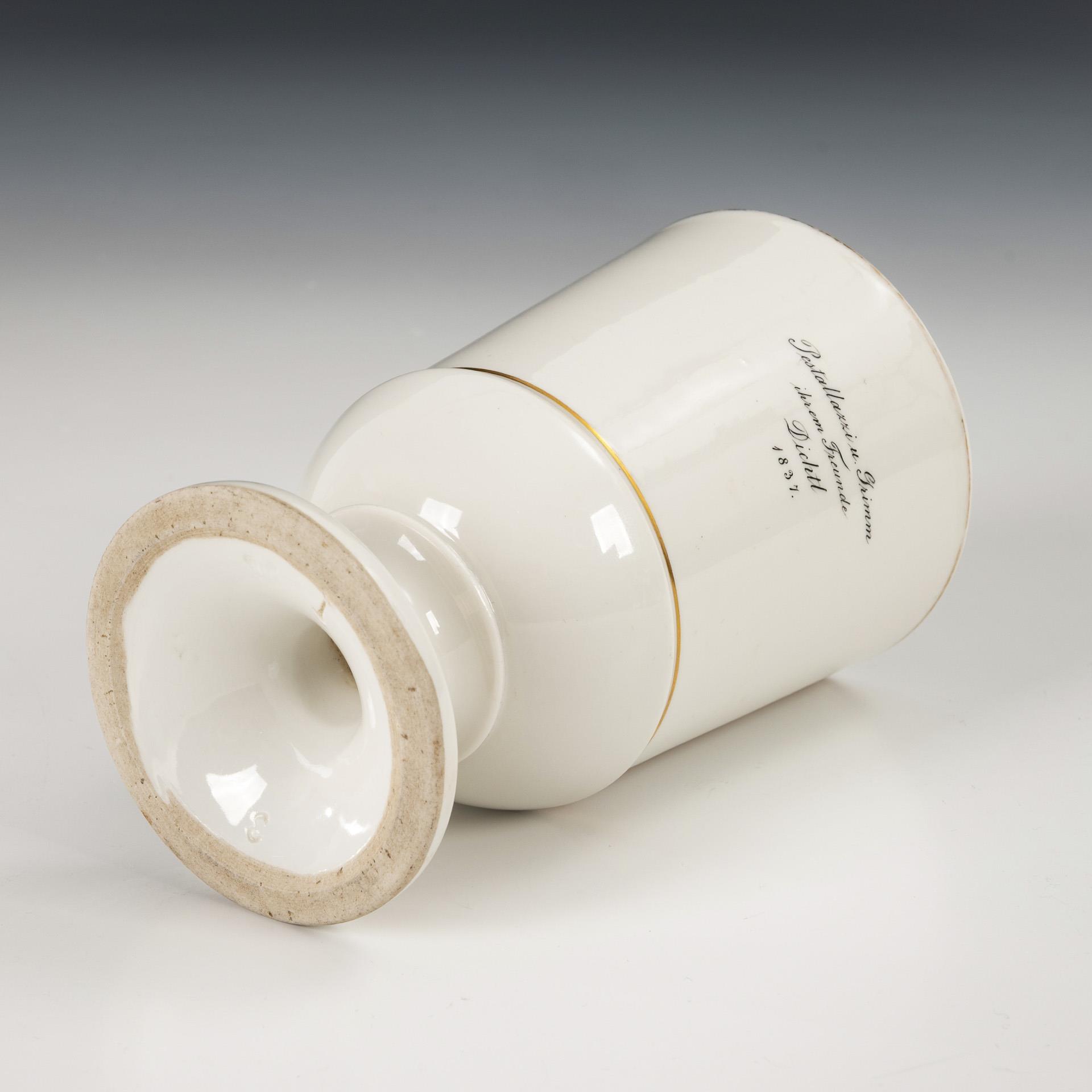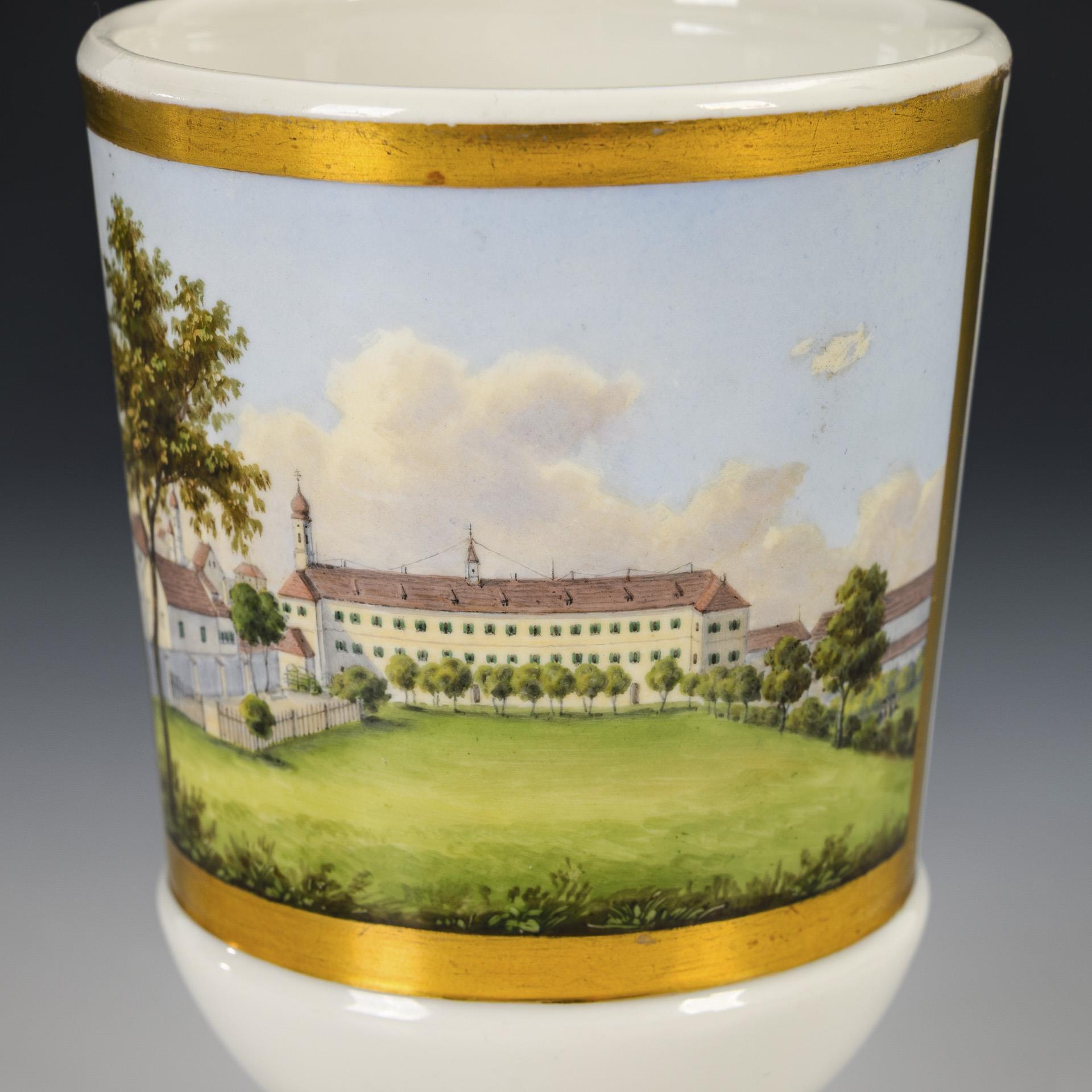 Foot cup with a view of a castle on the front, verso with the dedication "Pestallazzi u. Grimm ihrem Freunde Dichtl 1837.". Minimal gold wear.