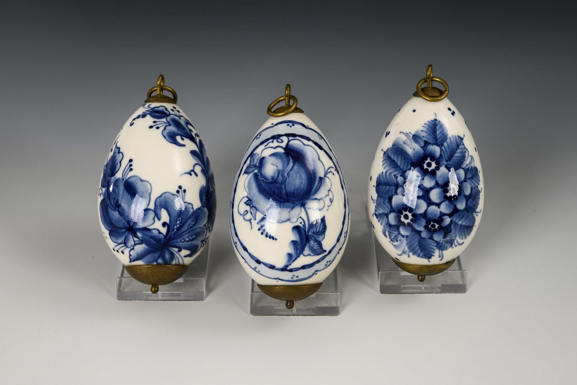 All with blue flower painting and Cyrillic letters. With brass-mounted suspension.