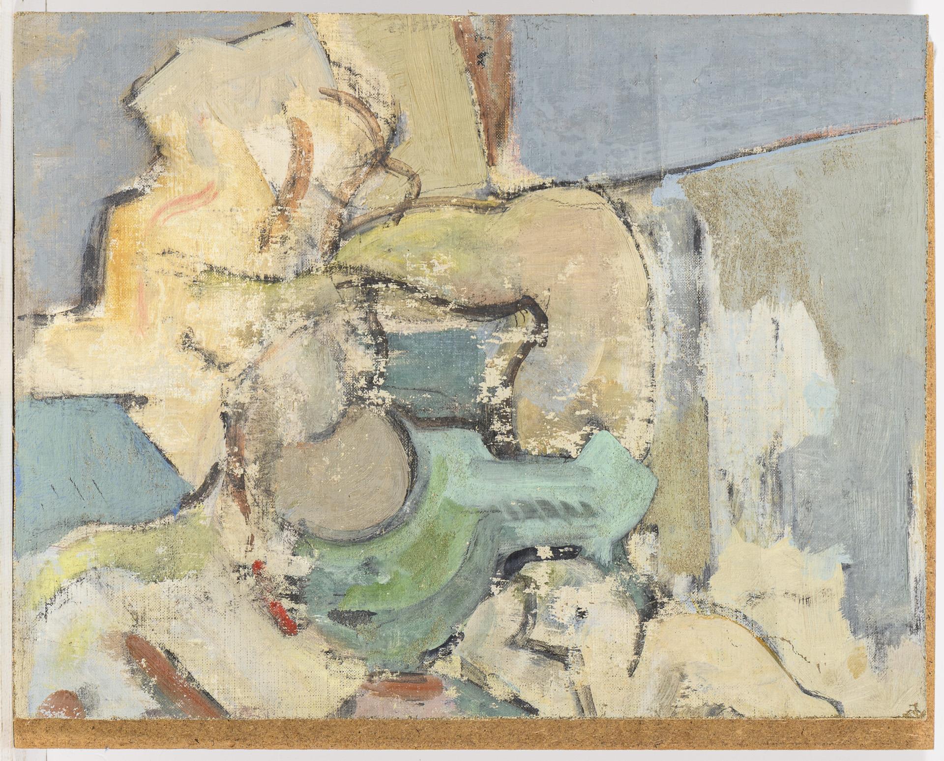 27 x 34.5 cm, verso abstract painting.