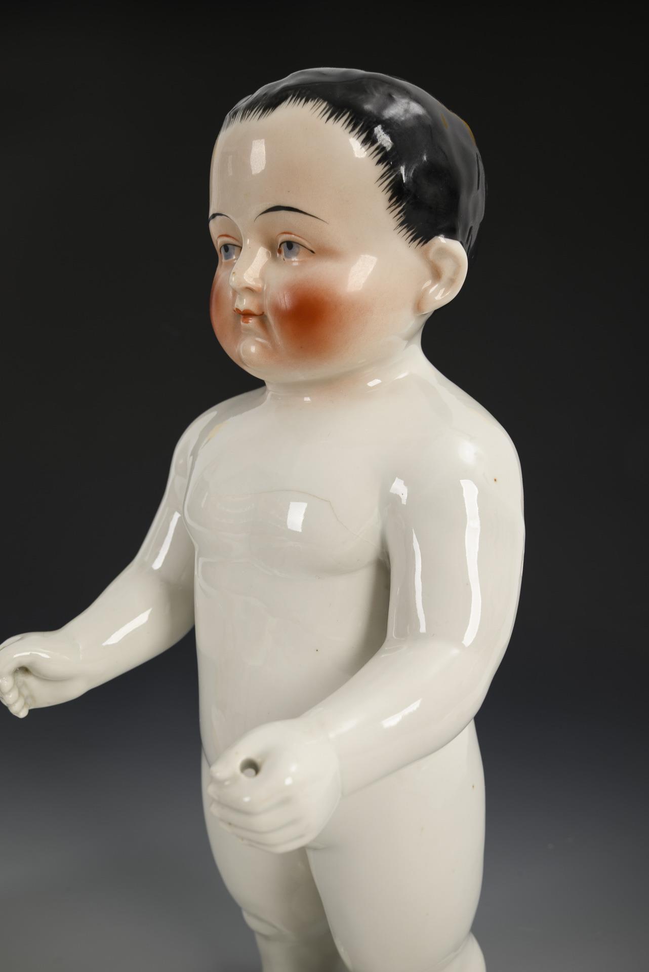 So-called naked frog or Frozen Charlotte. Same type, with red, blond and black hair. 1x with hairline on the back.