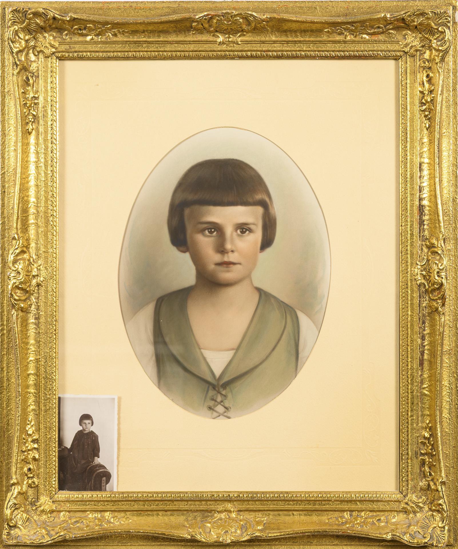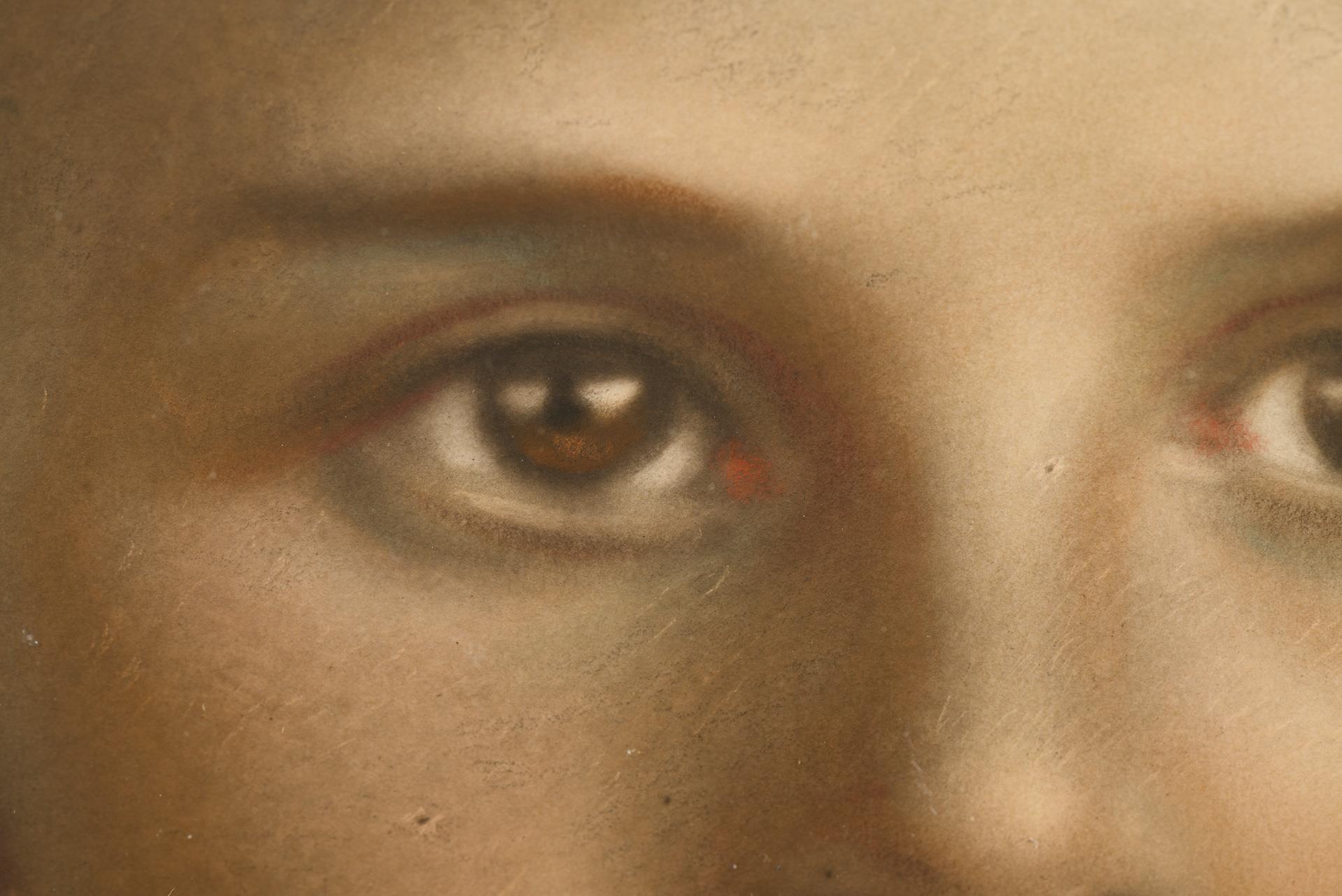 Pastel, possibly over a photograph. Unsigned.