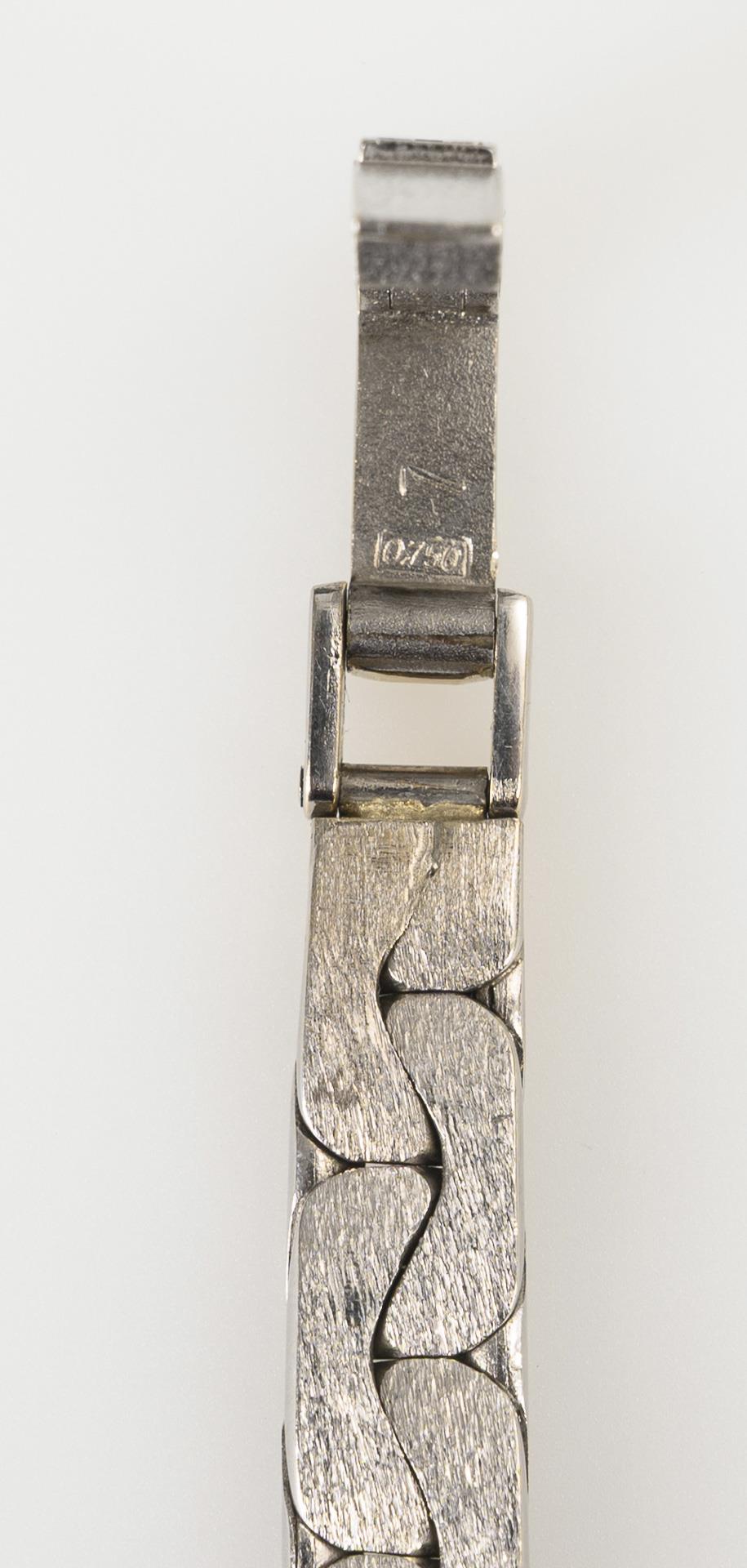 White gold. Stamped 750 on the back cover and on the clasp, company mark. Ø 2.2 cm, l 19 cm. 43 g.