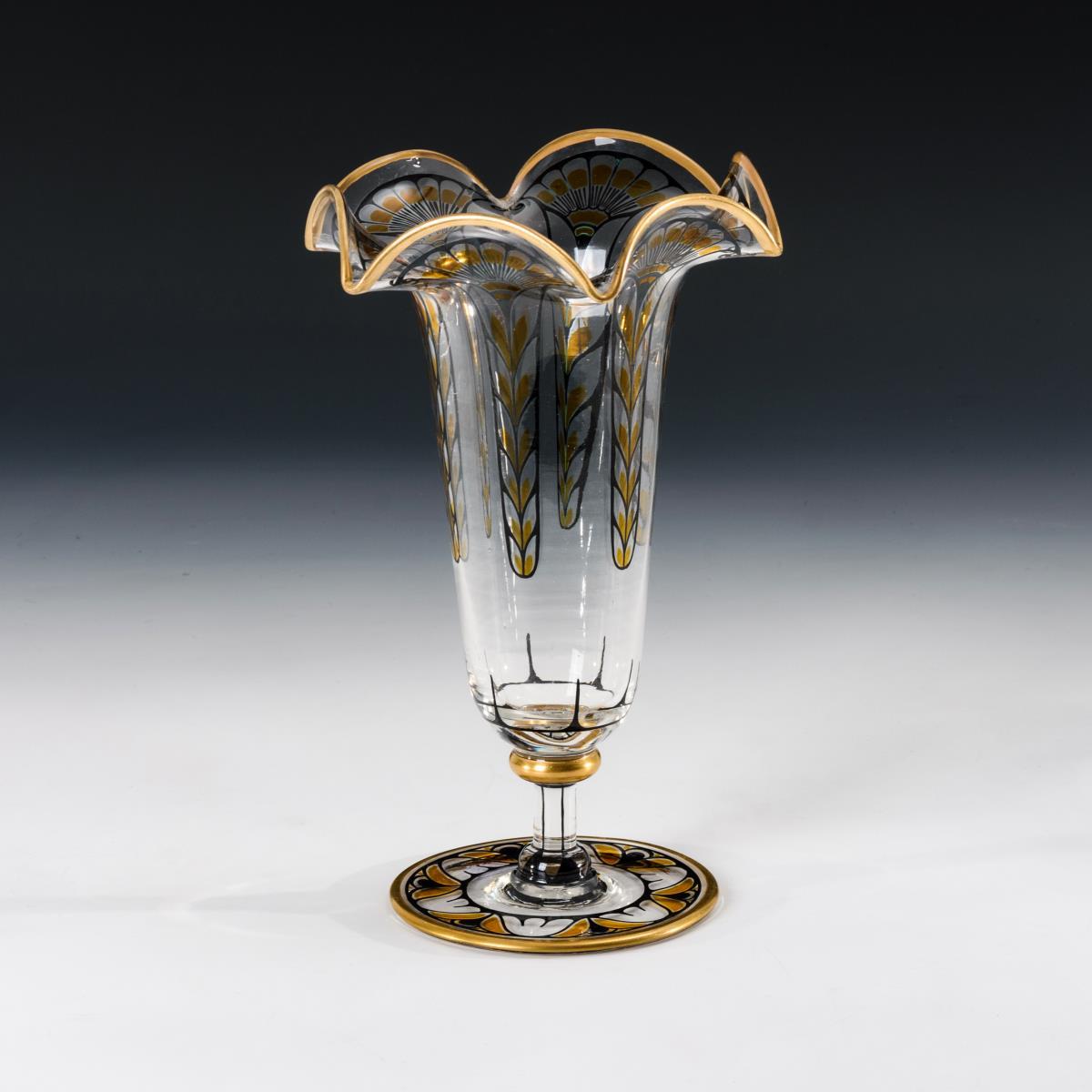 Farbloses Glas, Dekor in Schwarzlot und Gelbbeize, goldstaffiert.