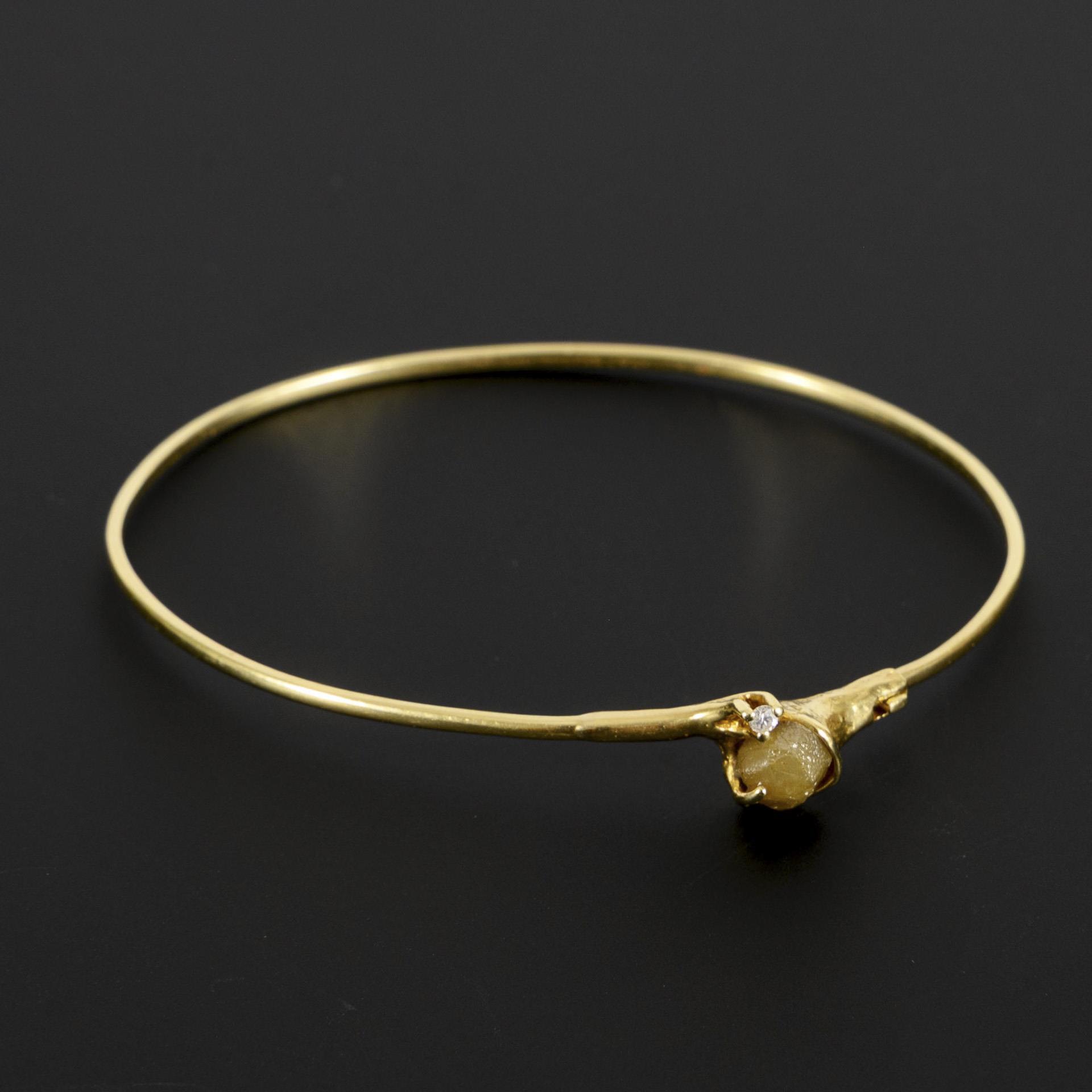 Delicate bangle with small brilliant-cut diamond and rough diamond. Slight signs of wear.