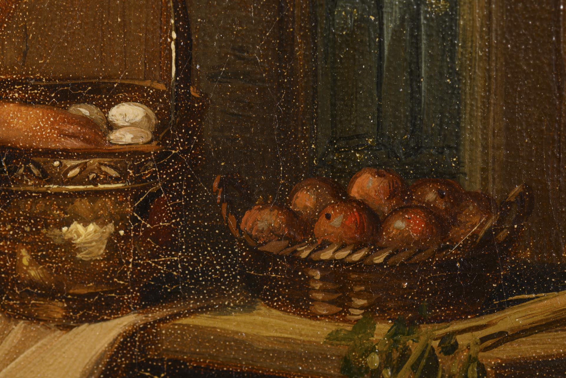Mother with the basket full of eggs at the house with the playing children. A defect.